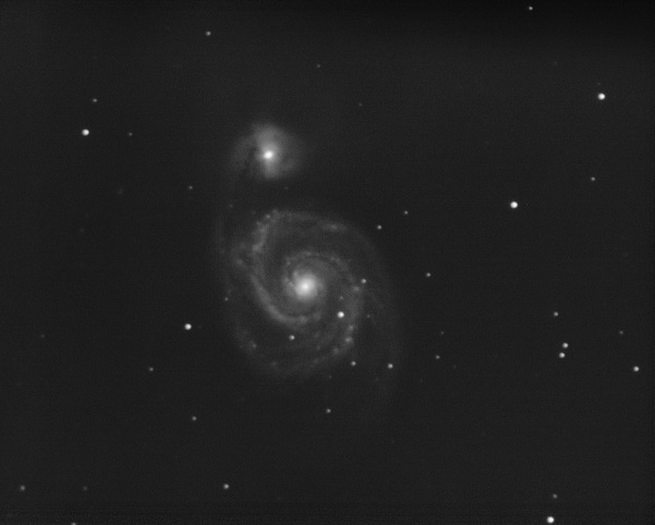 Сегоднешняя М51-Водоворот, на короткий 150\750мм рефрактор с балкона,автоведение-вилка от ШК8,фильтр френж-киллер,камера люминёра,чуть больше 500шт 11 секундных кадра,фото немного обрезано .Старался не перепалить центр -вроде не перепалил.  Просмотров: 999