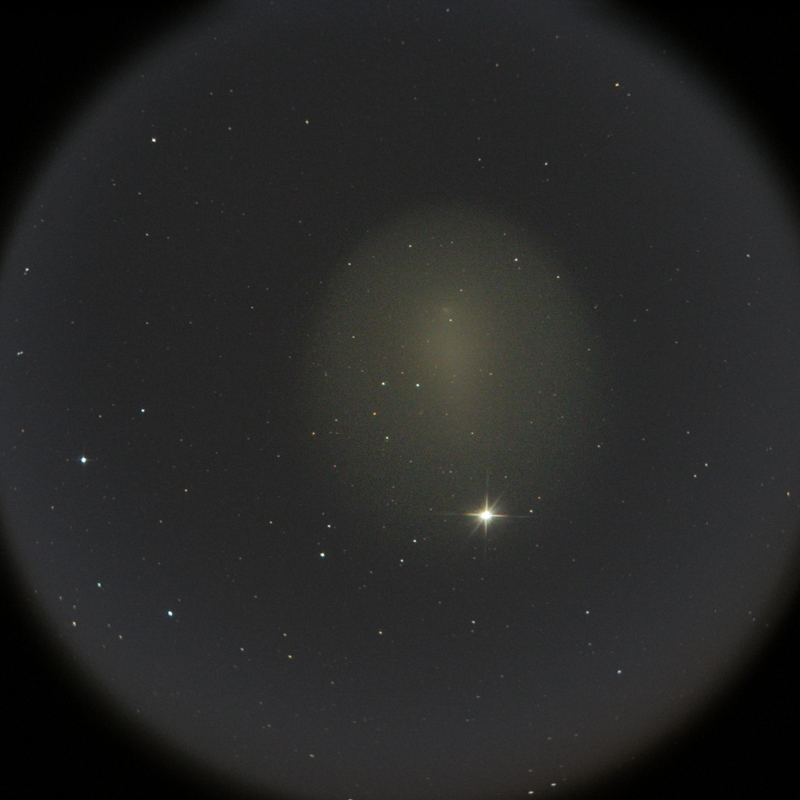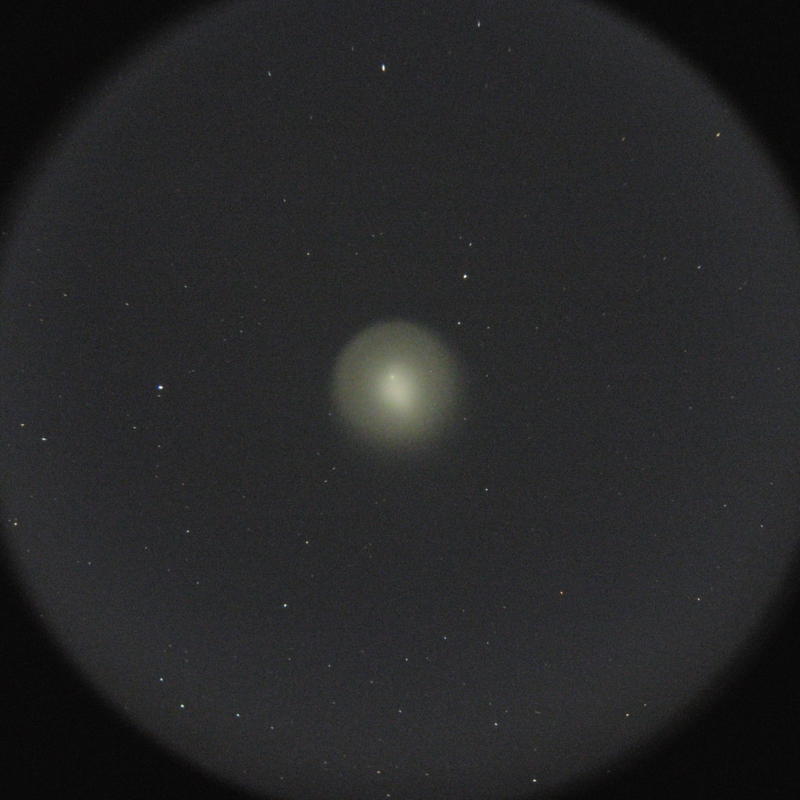 Комета 17P/Holmes от 4 ноября 2007 года. Балкон в Харькове. Телескоп ТАЛ-1 с самодельным приводом, съемка через окуляр цифрокомпактом Canon PS540. Сумма 17 кадров по 8 сек, iso 800. Поле зрения примерно 1,5 градуса. Север вверху.