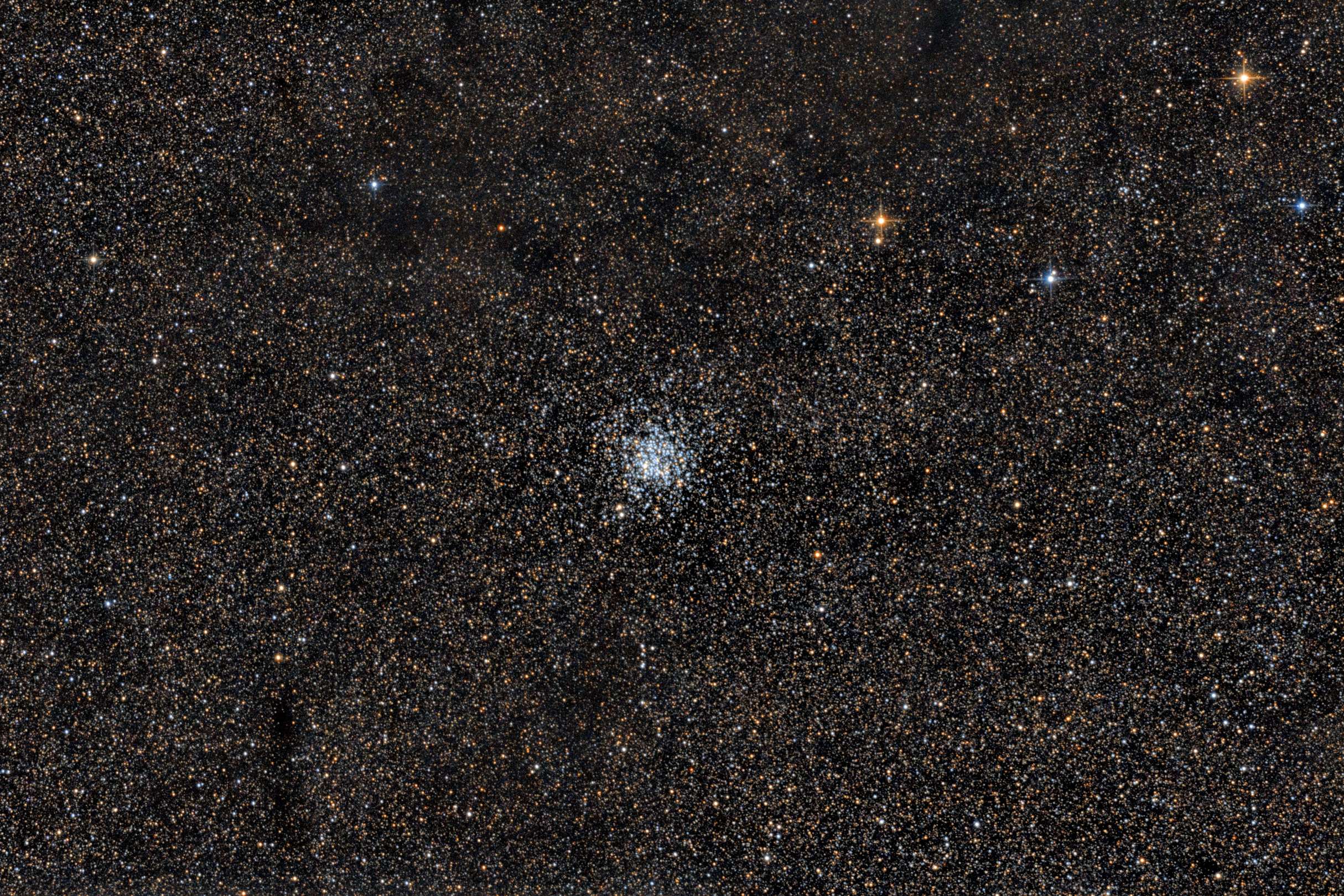 Очередной "выстрел" по Дикой Утке (М11). Благодаря большему накоплению удалось хорошо проявить не только само рассеянное скопление, но и темные туманности на фоне звездной россыпи созвездия Щит. Две сессии в первой половине сентября 2020 года. Всего 200 кадров по 30 сек на iso3200. Монтировка SW EQ5 + привод, Ньютон SW130\650 + комакорректор SW, Canon 550D. Балкон в Харькове, красная зона засветки.  Просмотров: 6798