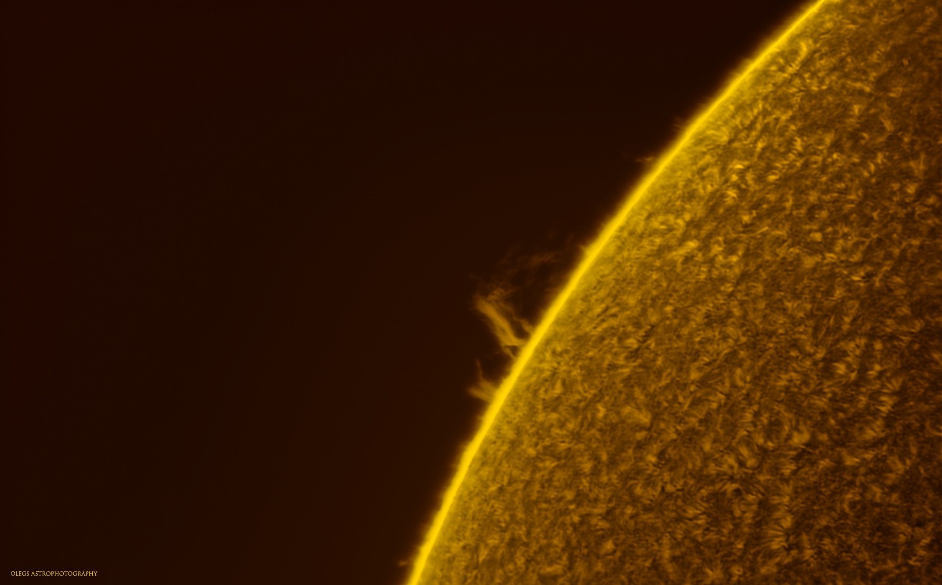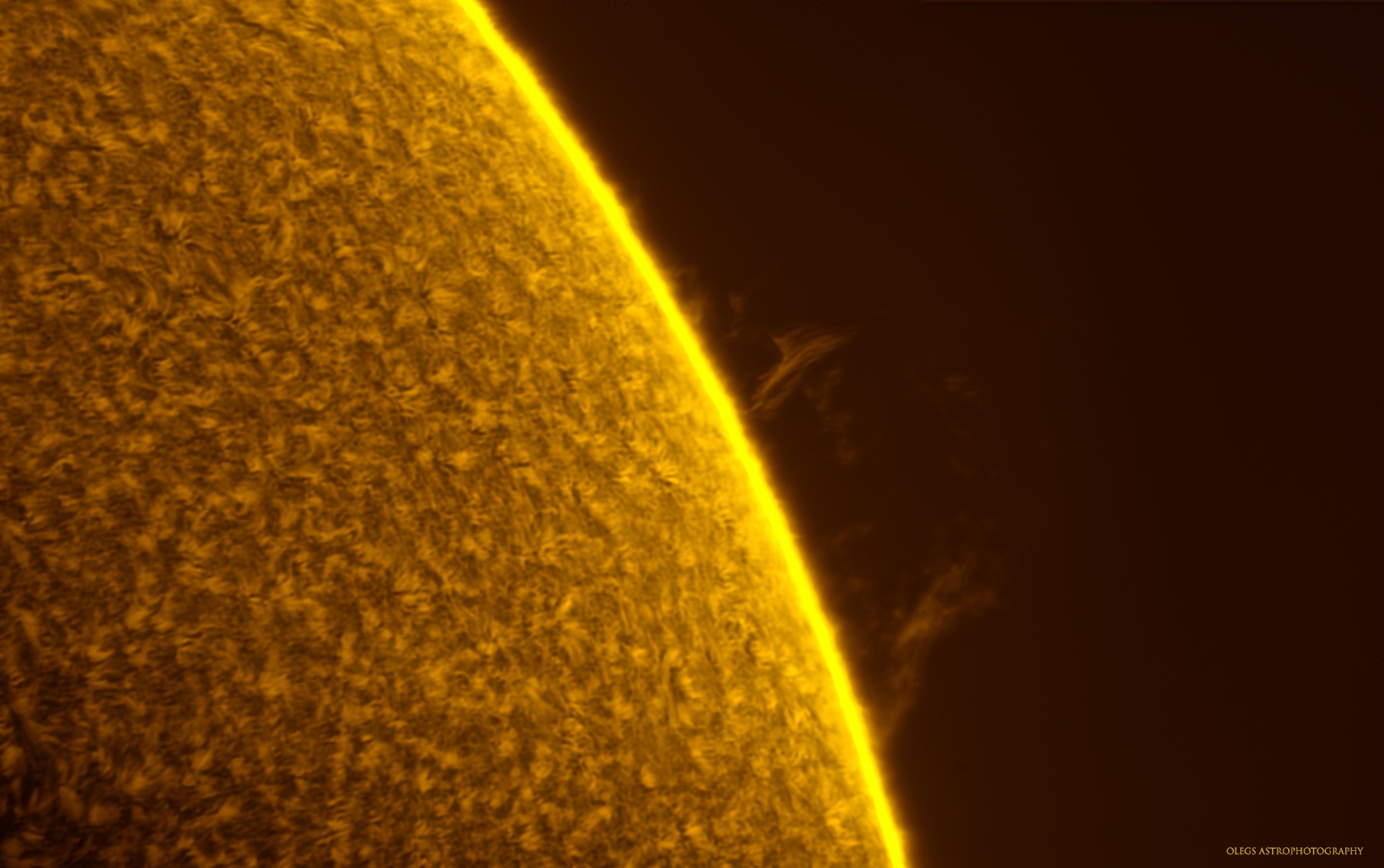 Обєкт: Сонце,протуберанці :super: Місце і час: с.Головківка 08.09.2021 захід сонця :rotate: Стек : 10% з 3000 кадрів Телескоп: Рефрактор 127/1450mm+Coronado PST BF15+Televue 2.5x Камера: ZWO 174mm Монтування : HEQ5 Обробка:SharpCap+Autostakkert+Photoshop