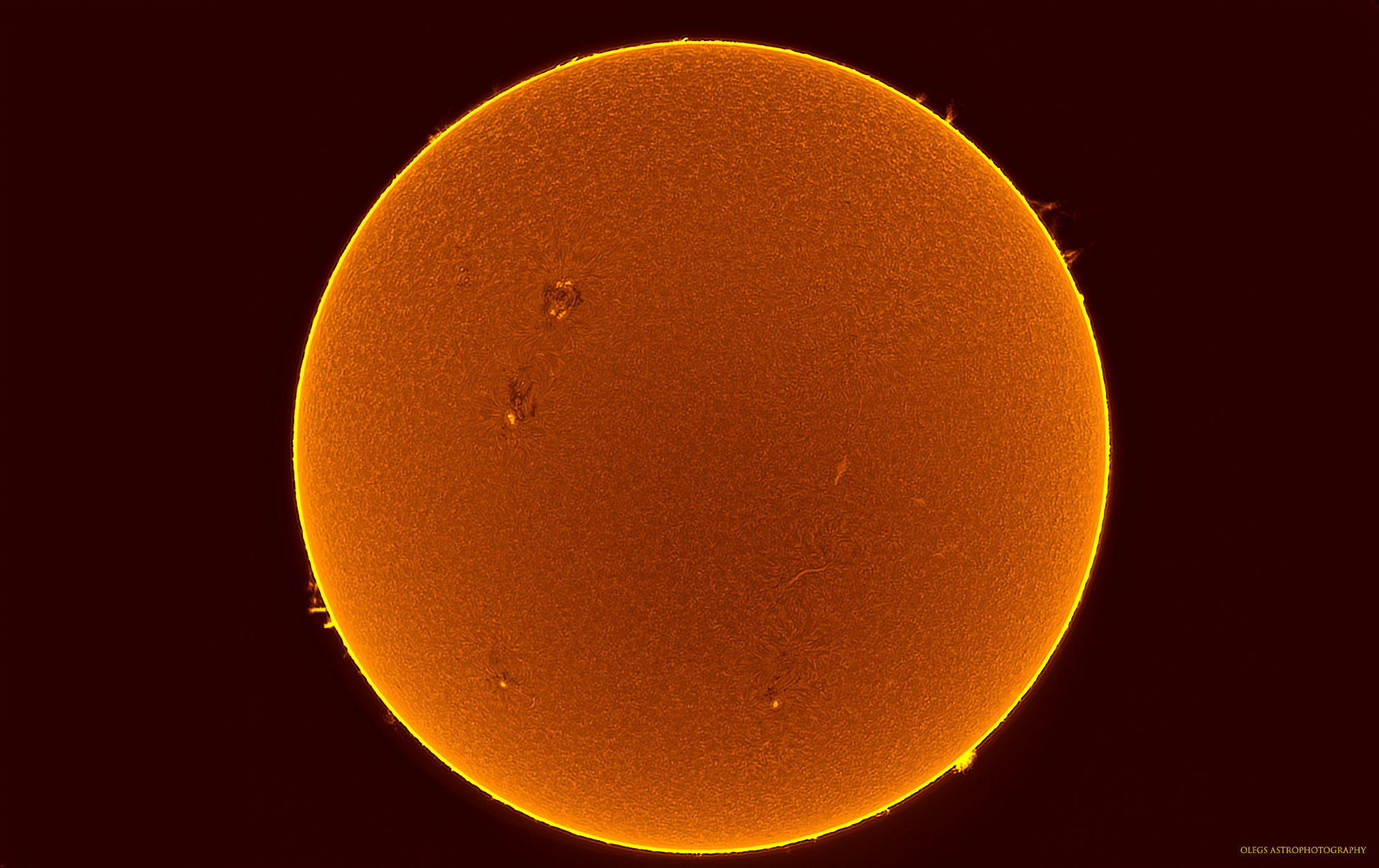 Обєкт: Сонце,плями і протуберанці :binolook: Місце і час: Головківка 08.09.2021 Стек : 25% з 3000 кадрів Телескоп: Coronado PST 40mm Камера: ZWO 174mm Монтування : HEQ5 Обробка:SharpCap+Autostakkert+Photoshop