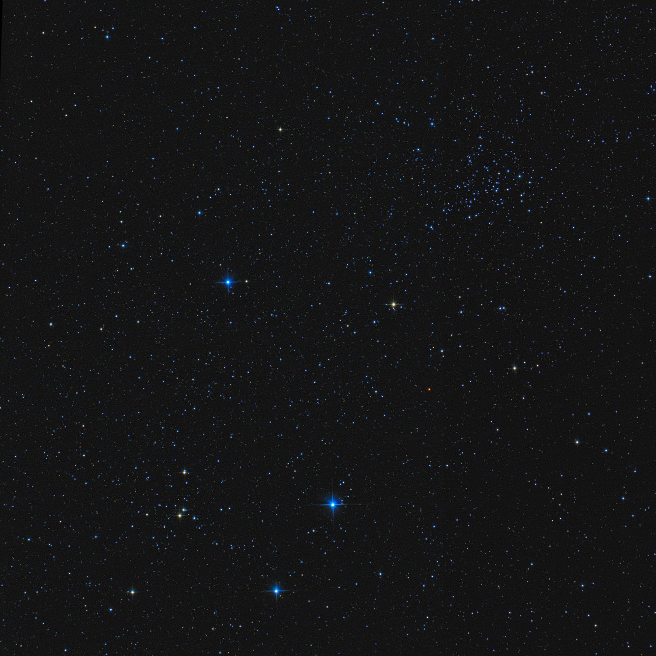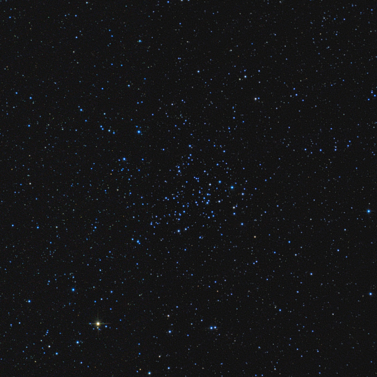 Переработал и фото большего скопления NGC1528, поле зрения около одного градуса, север вверху.