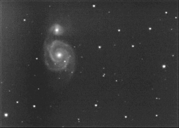 Вот наконец мы с Валерой добрались до дипов. Итак, первый блин М51. Инструмент: ахромат 80мм, камера люменера 70. Суммарная экспозиция около 20 мин. Снималась получасовая серия, получилось 120 кадров, с сумму пошло 79. Обработка: DSS + Photoshop CS5 Калибровка: только дарки.