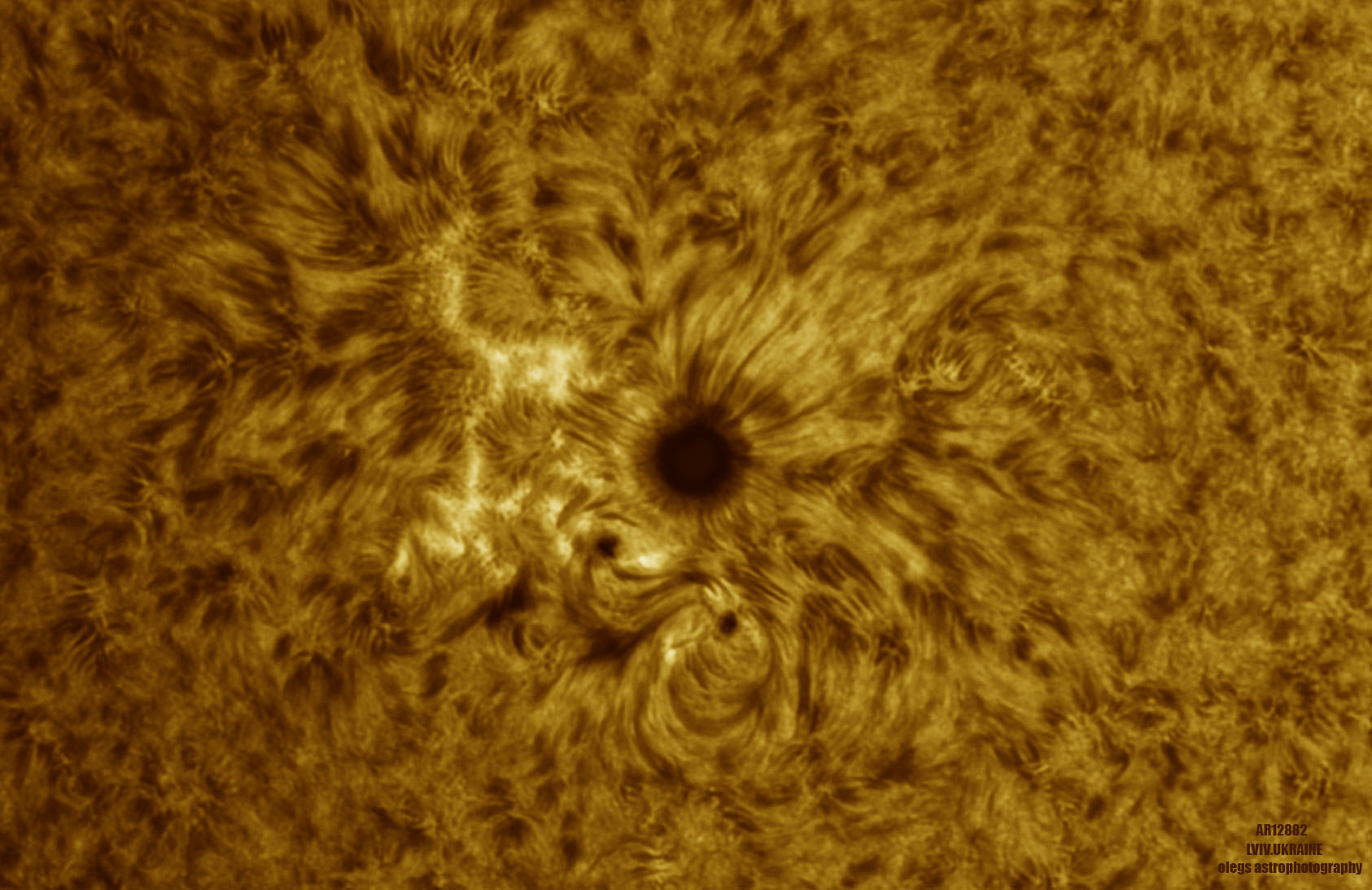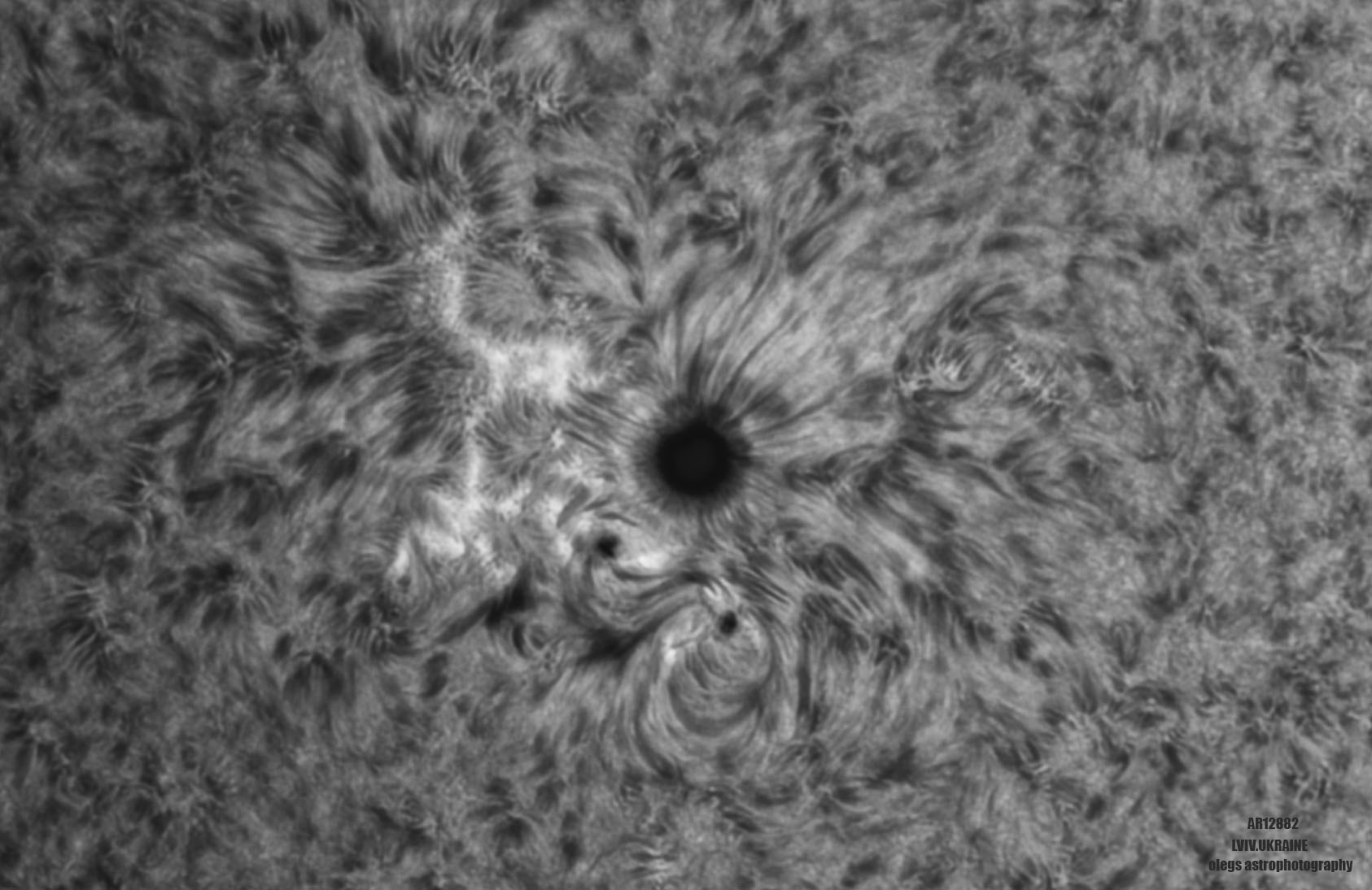 Обєкт: Полювання на сонячні плями AR12882 :super: Місце і час: Львів (астро кухня) 09.10.2021 :rotate: Стек : 5% з 3000 кадрів Телескоп: Рефрактор 127/1450mm+Coronado PST BF15+Televue 2.5х Камера: ZWO 174mm Монтування : EQ6-R Обробка:SharpCap+Autostakkert+Photoshop