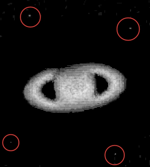 Не можу зрозуміти чи це помилка стеку чи шум камери. Можливо це дійсно 4 супутники Сатурна?! Не зовсім розумію як я зміг їх зняти. Ніби ще гексагон помітний, але не впевнений що при складанні 140 кадрів можна отримати такий результат. Arsenal 150/750, Nikon D5100, окуляр Arsenal SWA 4 mm, ЛБ 2Х.