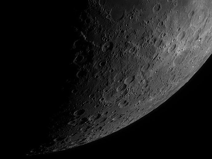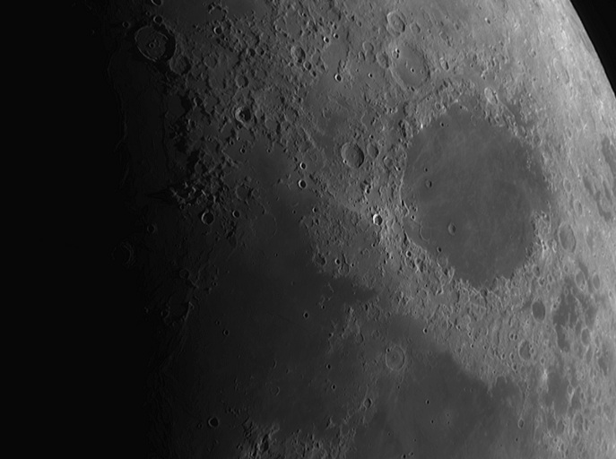 Мелкую зернистость прибрал, покрутив уровни с гаммой, снимок заменил. В идеале ещё бы 100-200 кадров, но увы ролик получился короткий, внезапно подул порывистый ветерок, изображение затряслось, пришлось остановить запись. В общем, остановился пока на таком варианте обработки. Я также обработал ещё несколько снимков в программе Аутостеккерт, лучшие из них я опубликовал на "клоудях": http://www.cloudynights.com/topic/50199 ... ?p=7126808 Если есть желание, можете глянуть. Там всё тоже самое, что и раньше, только в новой обработке. (самые мелкие кратеры которые удалось различить при таком масштабе, имеют диаметр от 1 до 1,5км)