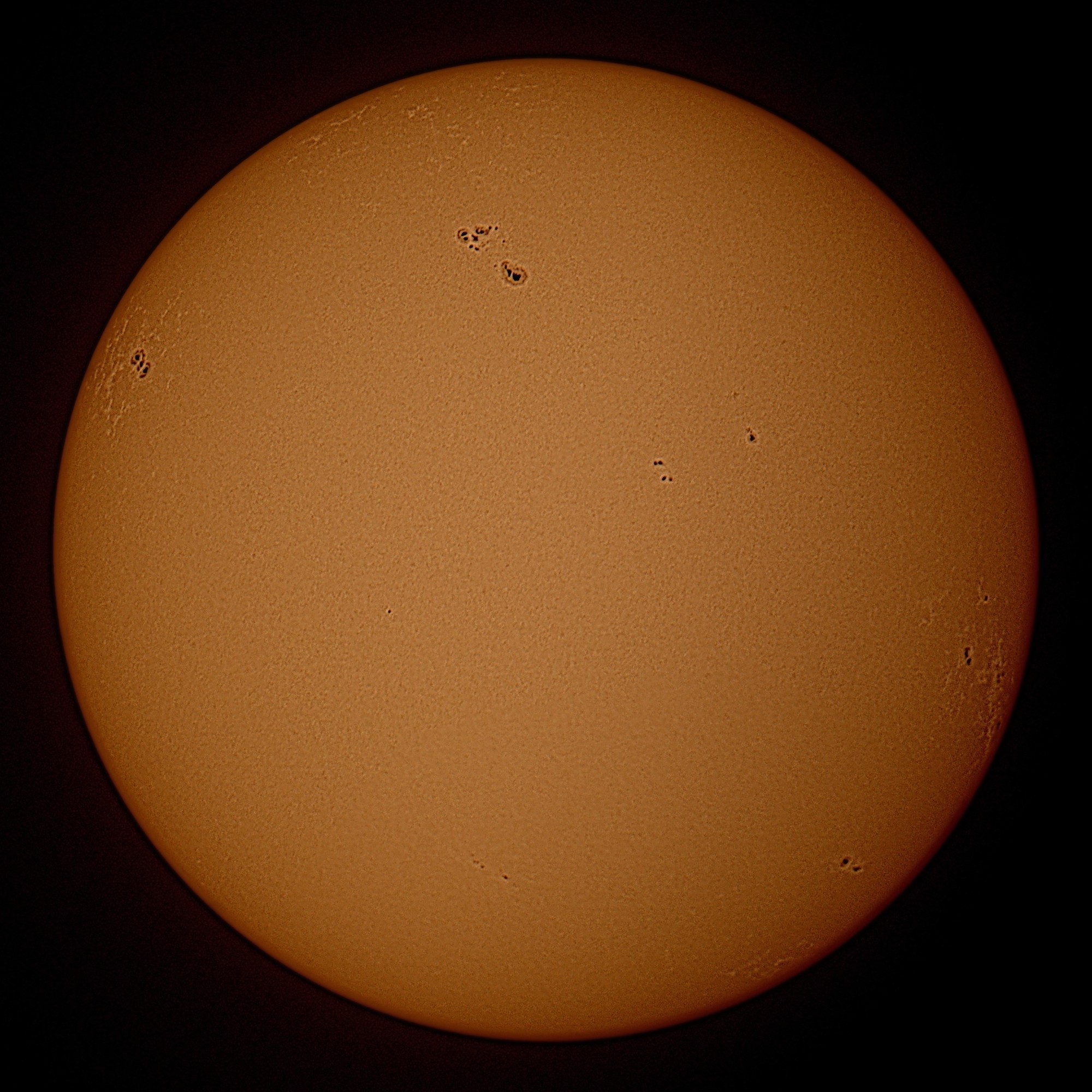06.12.2022 EQ-2 mod SW130x650 плёнка солар nikon 1j1 iso400 1/8000 143 кадра PIPP, RegiStax 5 псевдоцвет Полосы от обработки убрать не получилось, но так получается лучший вариант визуально, детальнее.