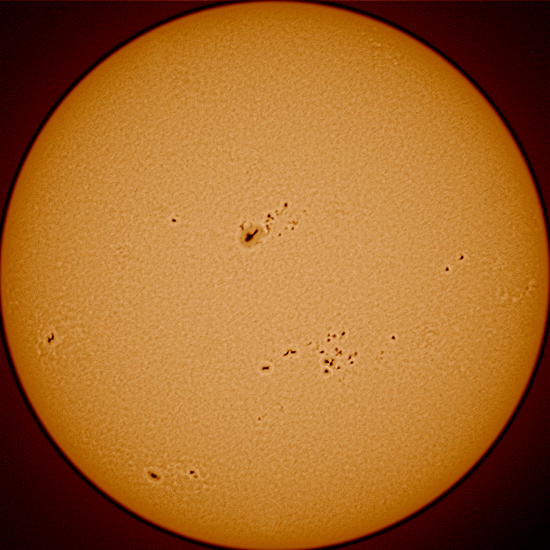 Сонце з групою плям №3220, №3217,№3219 Сфотографовано в м.Києві 12.02.2023 р.