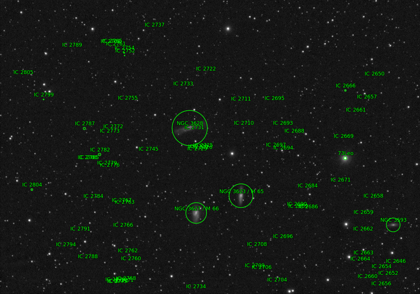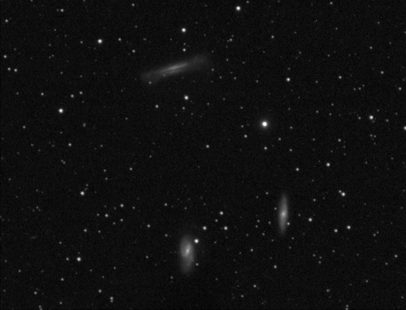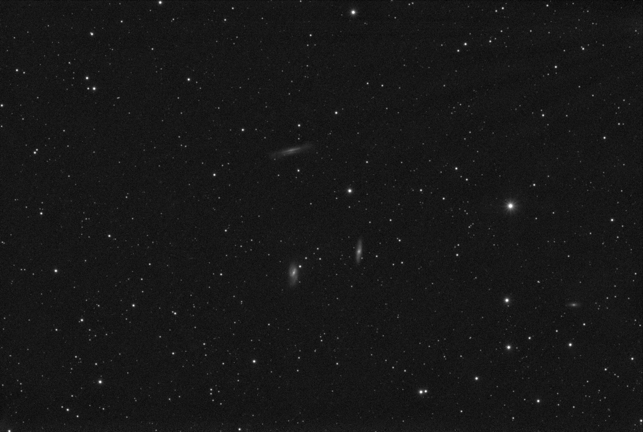 Продолжил съемку триплета во Льве.Оборудование то же, улично-балконн-оконная обсерватория. Доснял еще 69 кадров, по 120 сек. Итого: 99 кадров по 120 сек. Общее время накопления 3 часа 18 минут. Съемка от 08.01 и 17.01.2020 года. Масштаб 50%. Пиксельный масштаб: 7.36 arcsec/pixel. Север вверху.