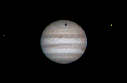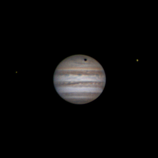 Слева Ио, справа Ганимед, как раз его тень диске Юпитера, у правого лимба заметно заходящее БКП;)