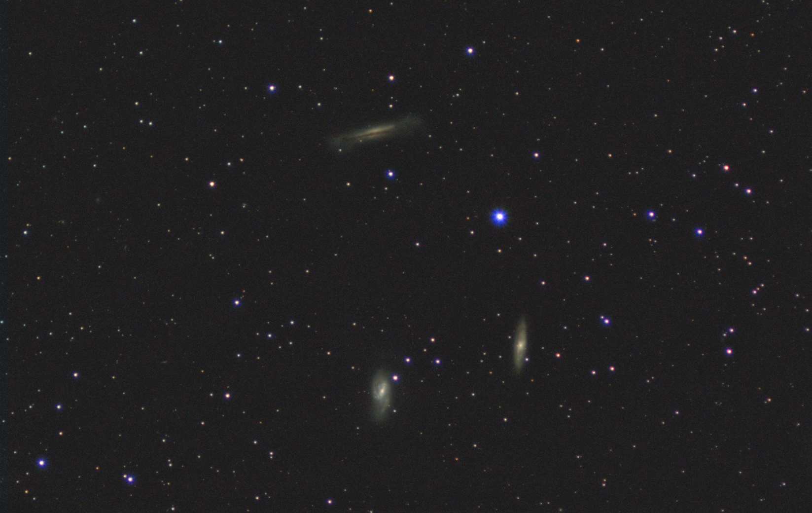 Продолжаю нашу тему галактик. И снова хит сезона, трио во Льве. Оборудование и место съемки без изменений. Результат трех сессий. По сессии на каждый канал. И того: R-канал 18 кадров по 300 сек., G - 20 кадров по 360 сек, B - 27 кадров по 360 сек. L- канал синтезирован путем сложения кадров из всех каналов в один. Ну и вот такой результат. Масштаб 50%.