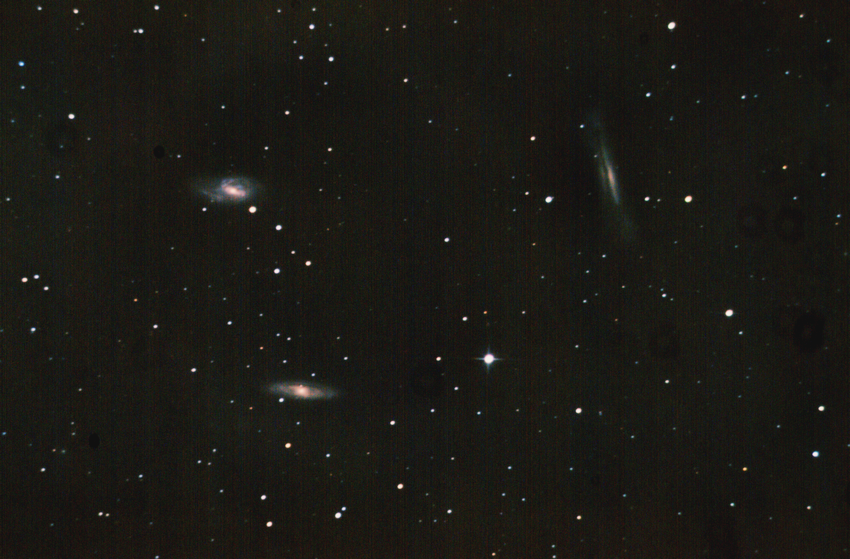 Сегодняшний Триплет Льва. SW150750, Heq-5, Canon 450d(a), 18x120s x 800iso + 9dark. APT+PHD+DSS+FitS+FS. Во время съёмки вылетела ПХД, поэтому всего 18кадров. Разобраться почему пока не смог . С фотика убран фильтр, но преимущества пока не увидел (только пыли добавил ) Вобщем что есть...