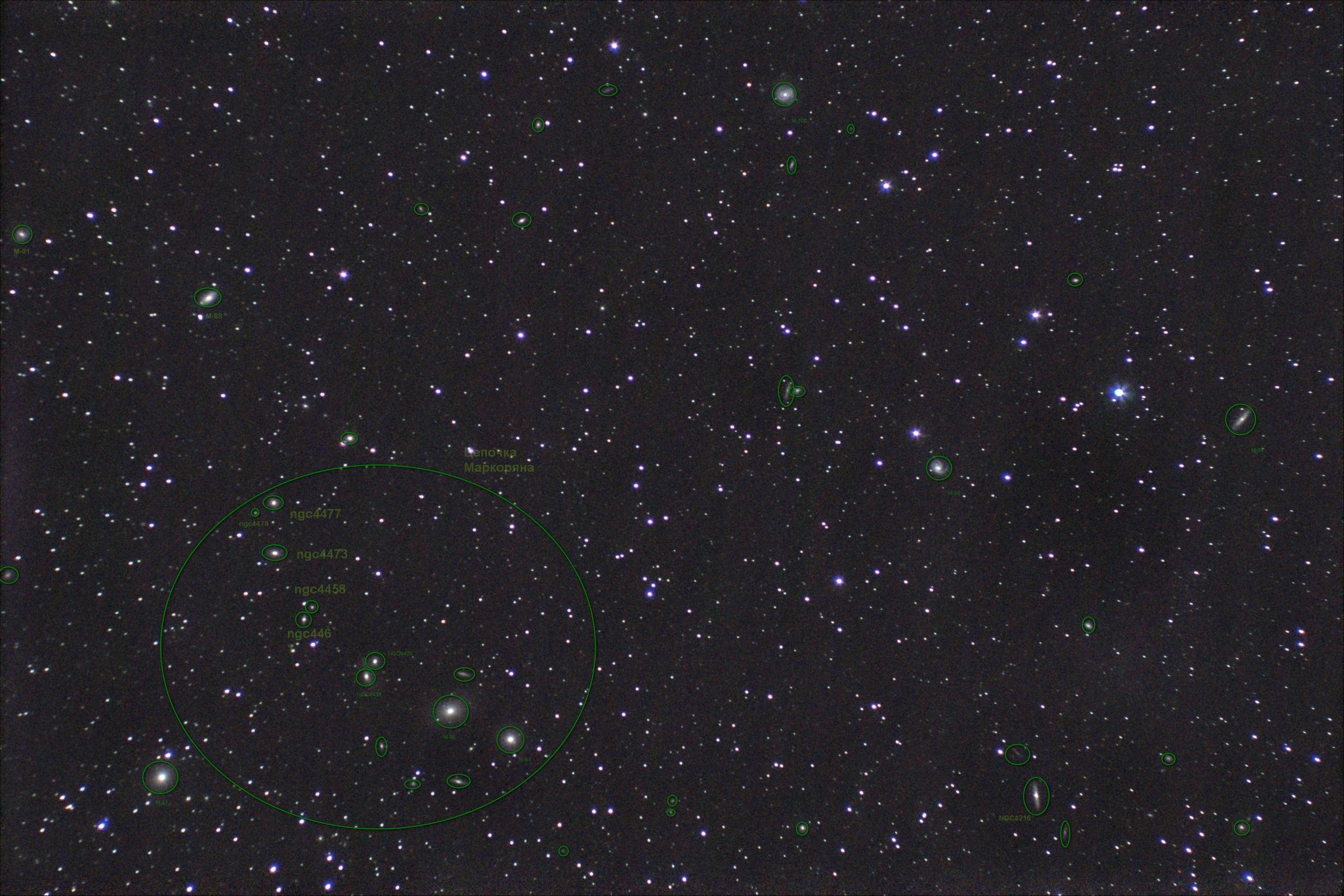23,04,20 выдалась погодка. Кластер галактик в cозвездии "Волосы Вероники" и немного "Девы". накопить больше ,пока неудалось