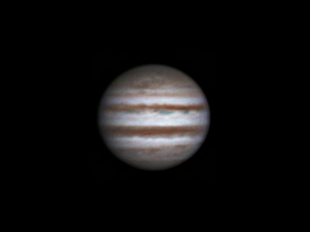 Вчера по прогнозу атмосфера была плохой (3-1 из 5-5), в реальности так и оказалось. Но, тем не менее, удалось вырвать кусочек более-менее спокойной атмосферы. Юпитер, 30 марта 2014 г., 20:42. Sky-Watcher BKP150750EQ5, линза Барлоу НПЗ PAG 3-5x (7x), Canon 550D, PIPP, Autostakkert (3500 кадров из 8500), Registax 6, PS. Масштаб 75%.