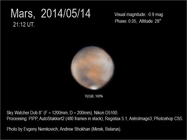 А вот мой Марс снятый 14 05 2014 (первый моя обработка - второй обработка Андрей Шохан) а так материал мой -) Как снято Андрей Шохан подписал на снимке -)