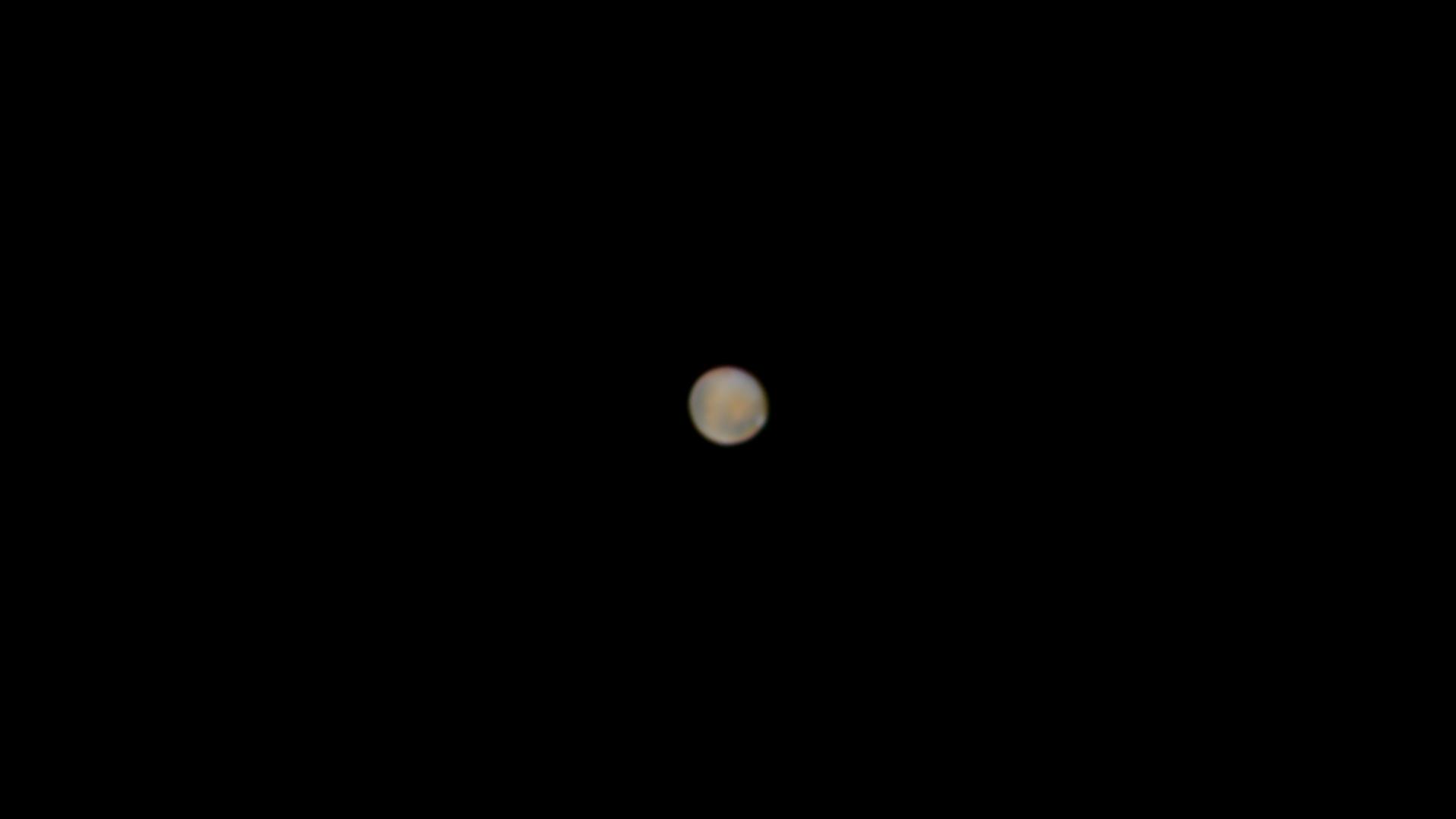 "Убегающий" Марс от 21 мая 2014 г, снят в окошко многоэтажки Труба Ньютона SW13065DS, линза Барлоу 2,5х плюс экстендер 168мм, эффективное фокусное расстояние примерно 4,5 метра. Приемник - цифрозеркалка Кэнон 550Д, видеорежим 640х480 кроп, 60 кадров в секунду. В обработку пошло 2 ролика по 5 мин. Выборка, обрезка, выравнивание в PIPP по 6000 кадров из каждого ролика. Еще одна выборка лучших 6000 кадров, сложение, вайвлеты, баланс цветов, сведение каналов в Регистак5, доводка в Фотошопе. Резулатат 150%