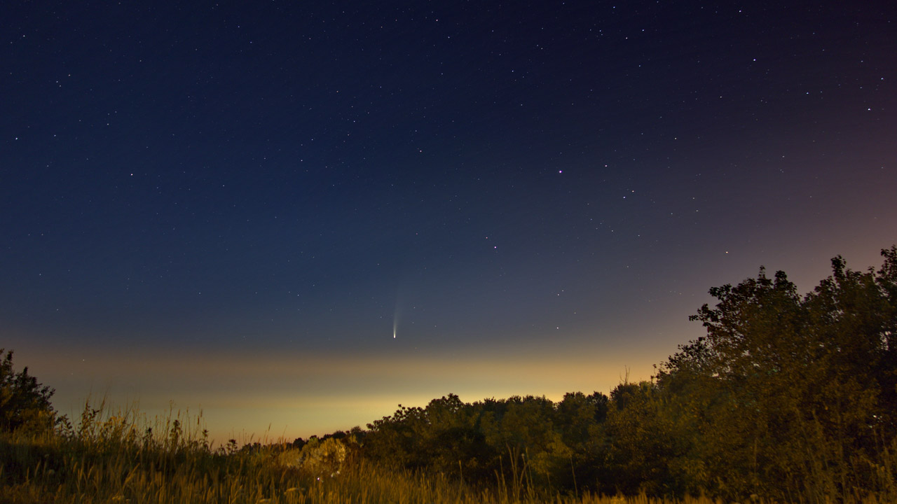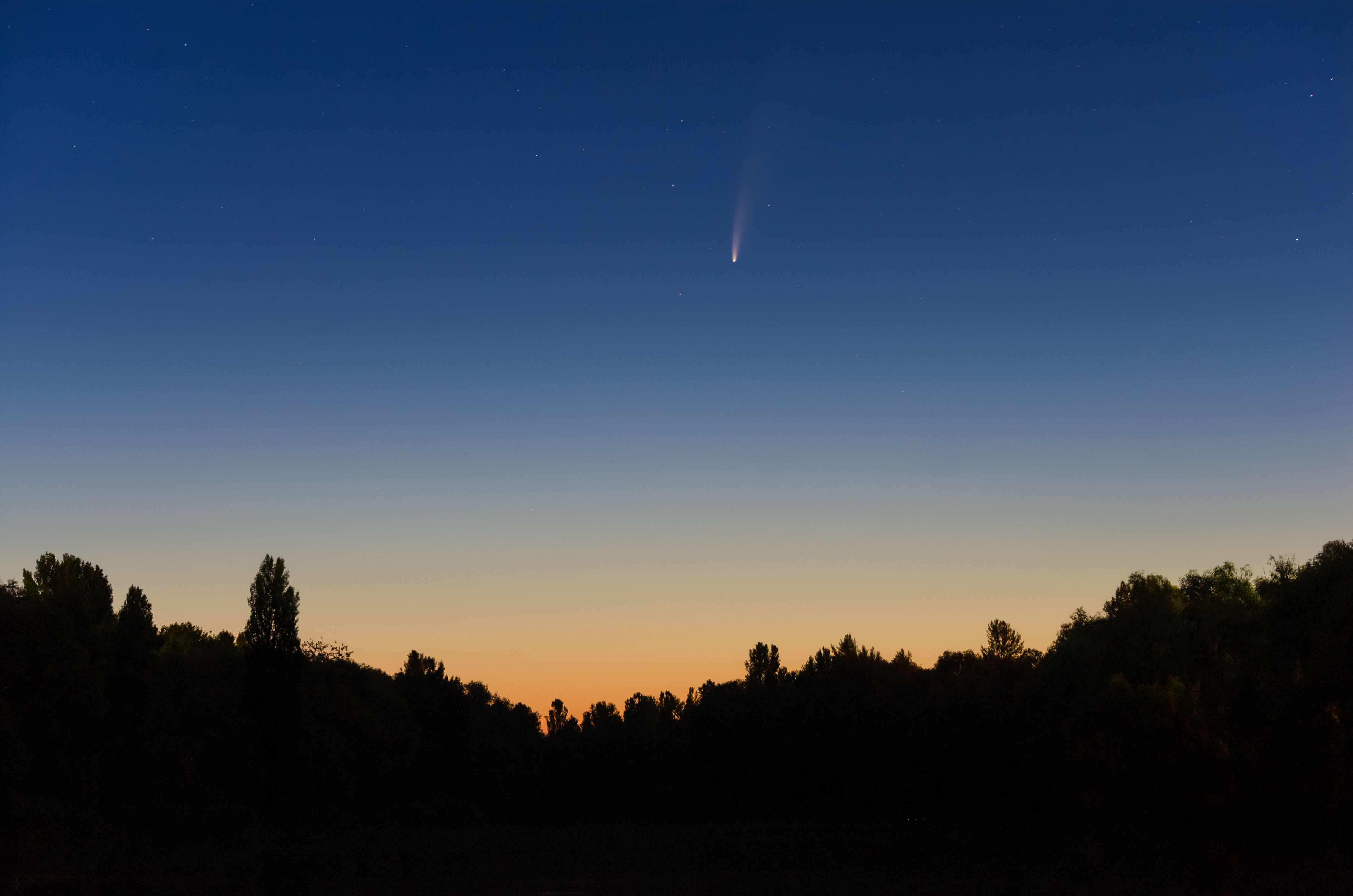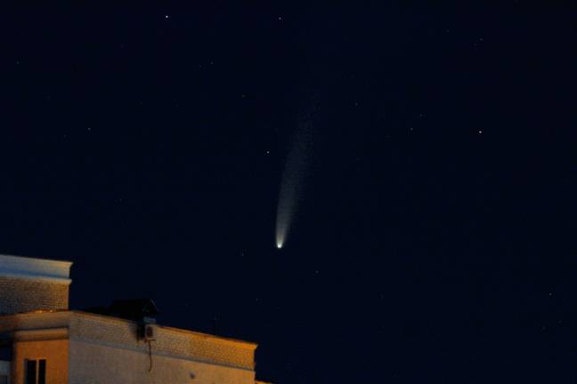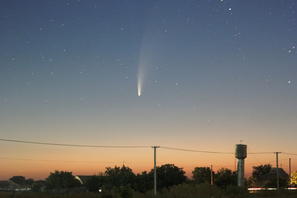 Комета С/2020 F3 NEOWISE. Фото сделано сегодня утром. с.Круглоозерка Херсонская область Украина. Фотоаппарат Canon 60D. Объектив Canon EF 50 mm f/1.8 STM. ISO1000. Диафрагма f/3.2.