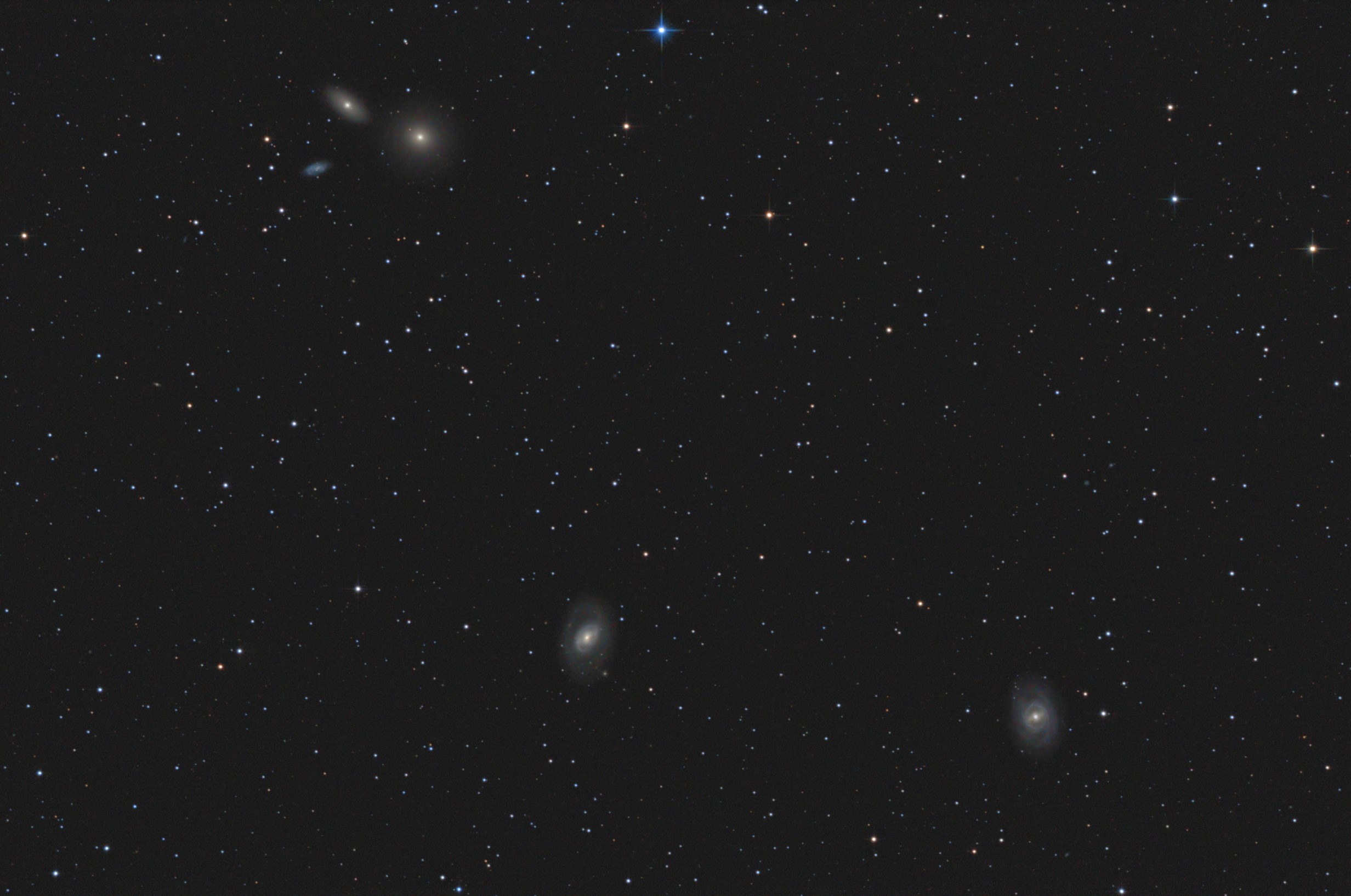 Группа галактик в созвездии Лев. Справа налево спиральные галактики М95 и М96, выше эллиптические галактики М105 и NGC3384, и чуть левее еще спиральная NGC3389.