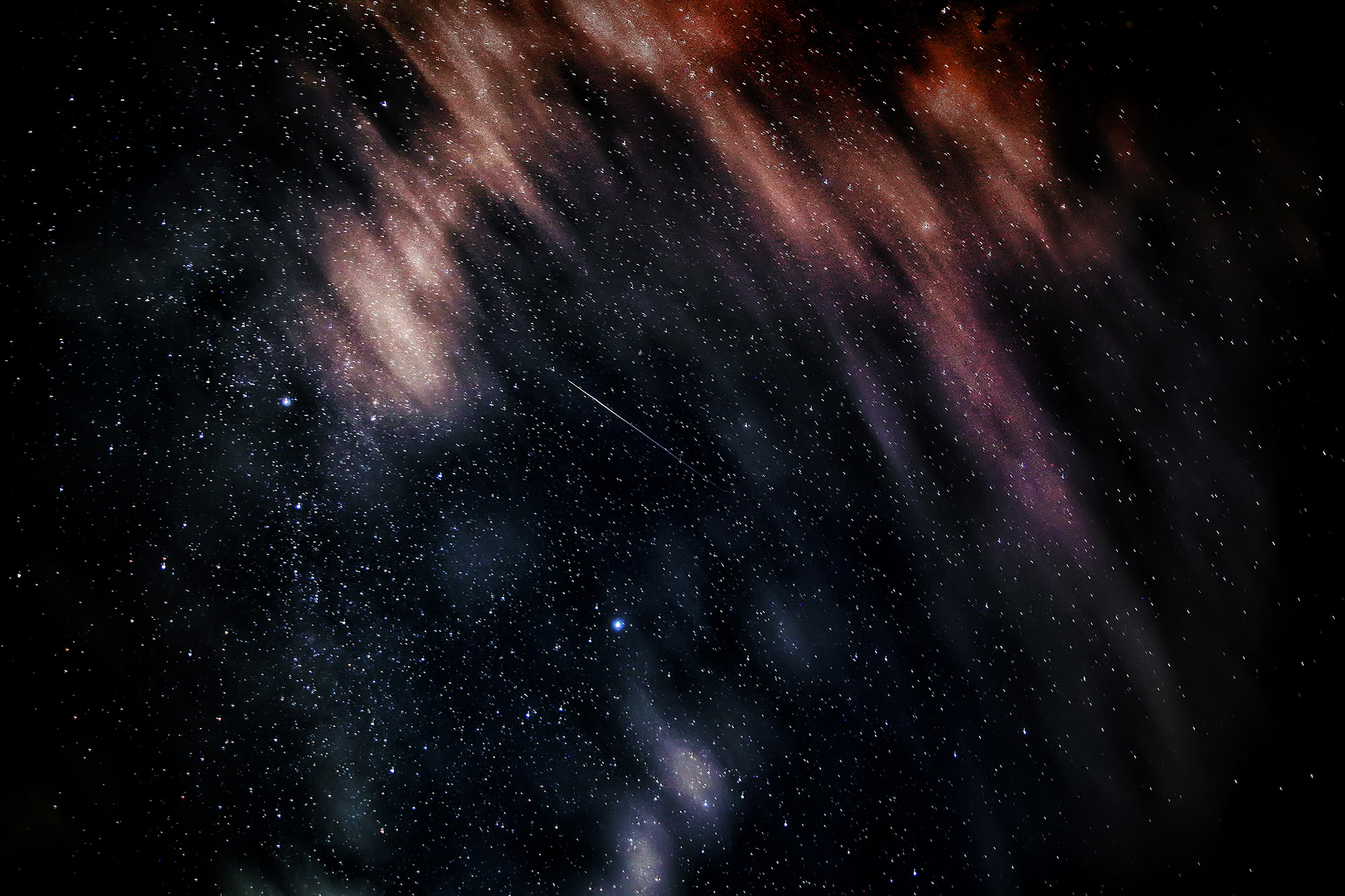 Вчера вывез за город телескоп, но небо было застелено облаками и с телескопом ничего не вышло, зато порадовал случайный метеор. Canon 6D на штативе, объектив 24-70. 24mm ISO800 F2,8 45s. Постобработка Photoshop CC.