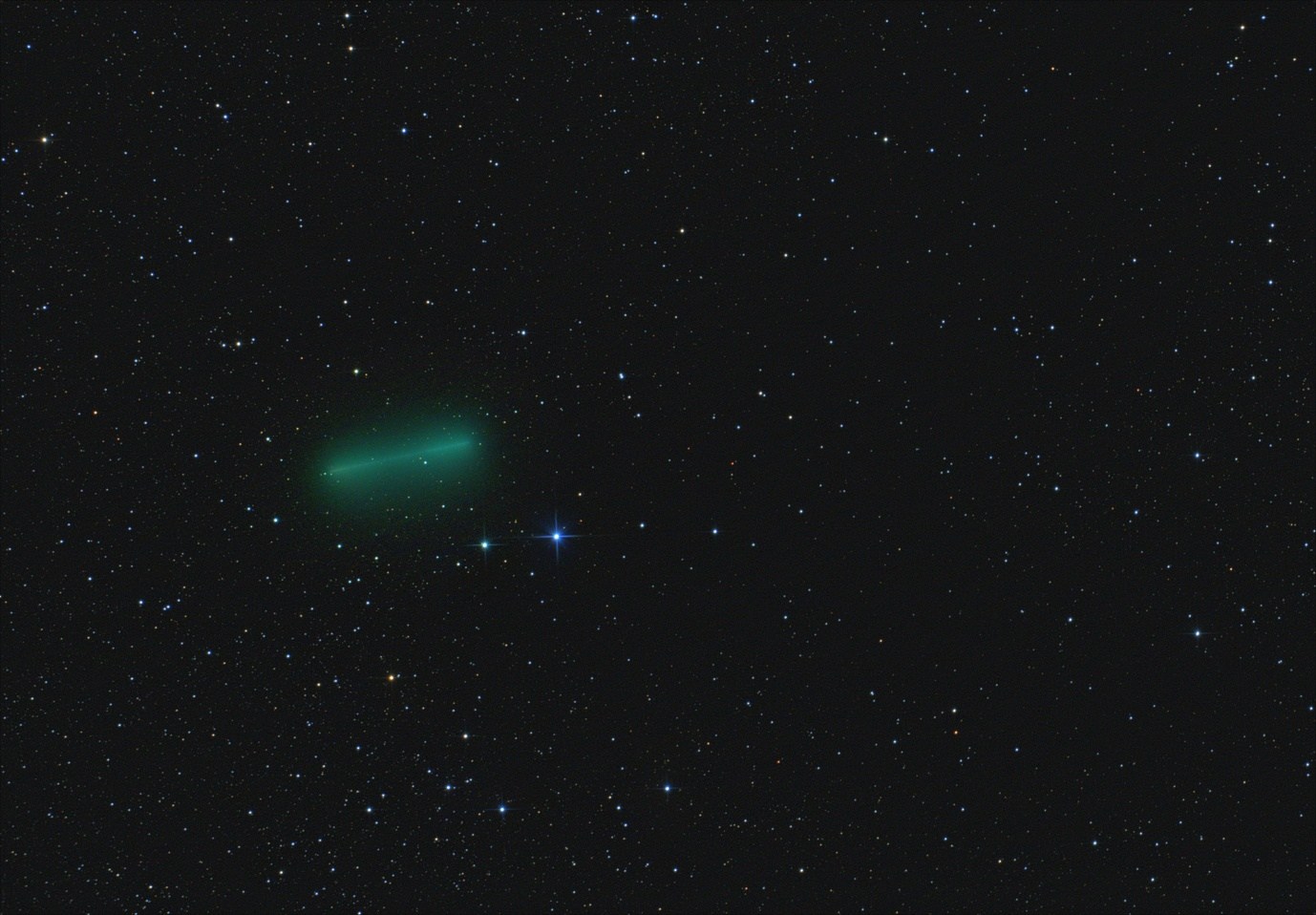 Кроп-кадр неподвижной кометы без звездных треков:  Просмотров: 4772