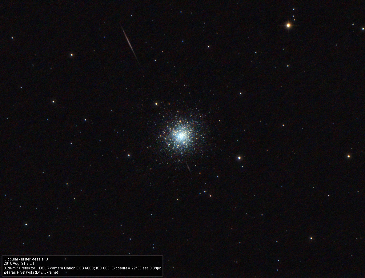 Taras Prystavski писал(а): Messier 3 з метеором в останній вечір літа.