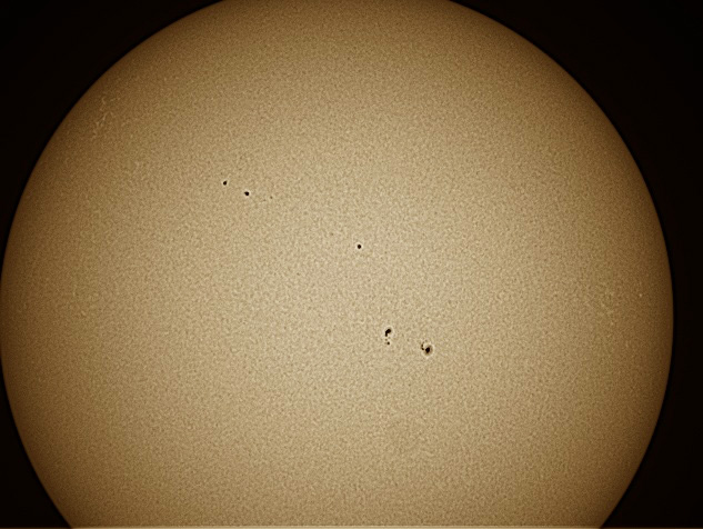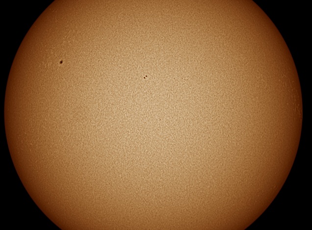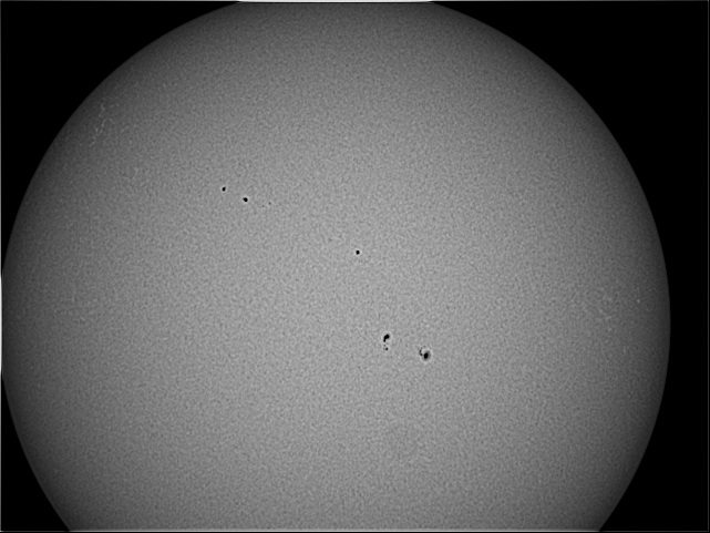 Сегоднешнее Солнце на короткий рефрактор 80 мм с балкона,автоведение,немного больше 1000 кадров,фильтр UV-IR,регистакс 5 ,немного ФШ,камера люминёра.Одно из фото псевдоцвет.  Просмотров: 899
