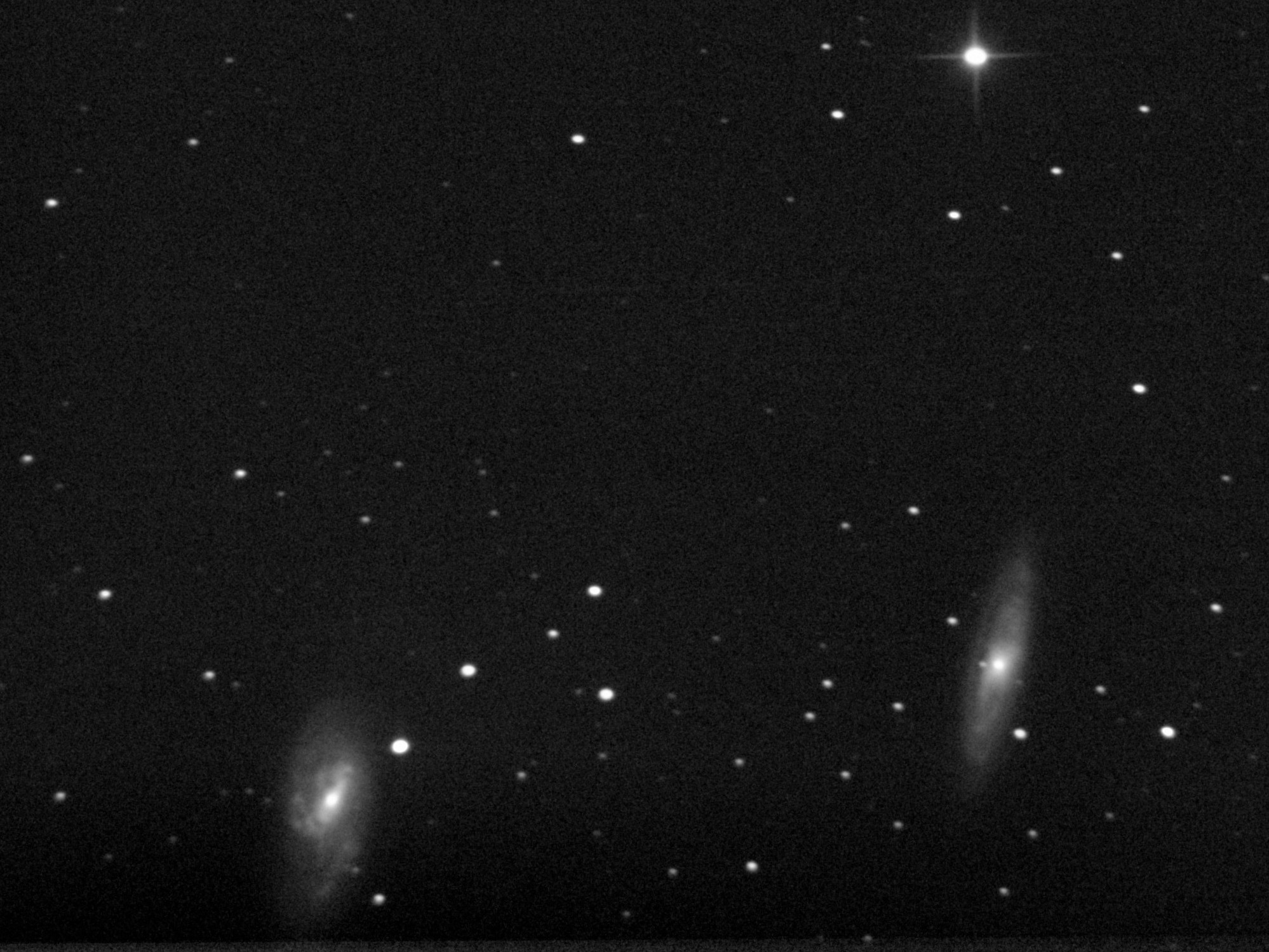 Михаил Астроскоп писал(а): Отмечусь и я. М65 и М66 50 кадров по 120 сек. Ресайз 33% Дудка на базе объектива Индустар 11м. Фокус 450 мм. диаметр 50 мм. Камера ZWO ASI 178 MM Сложение и калибровка дарками DSS, постобработка (точнее спасение отснятого материала) фотошоп.[/attachment] для такой дудки, очень даже достойно