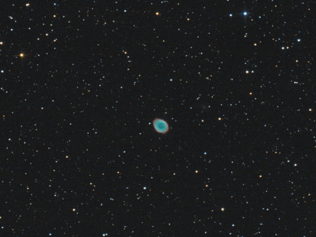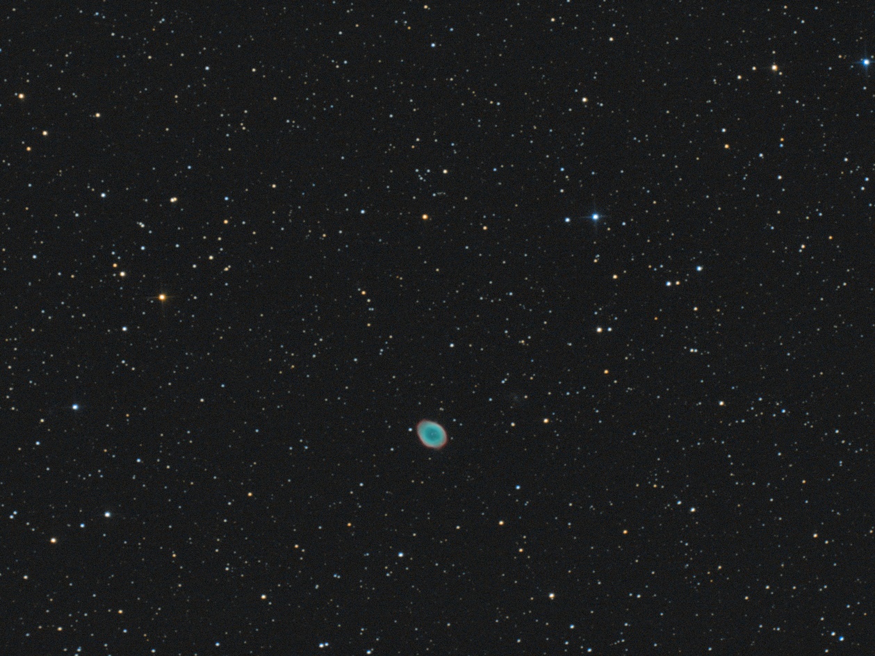 Планетарная туманность Кольцо (М57) в созвездии Лиры, 45 кадров, всего 225 секунд, ИСО6400, кроп 35%.  Просмотров: 2054