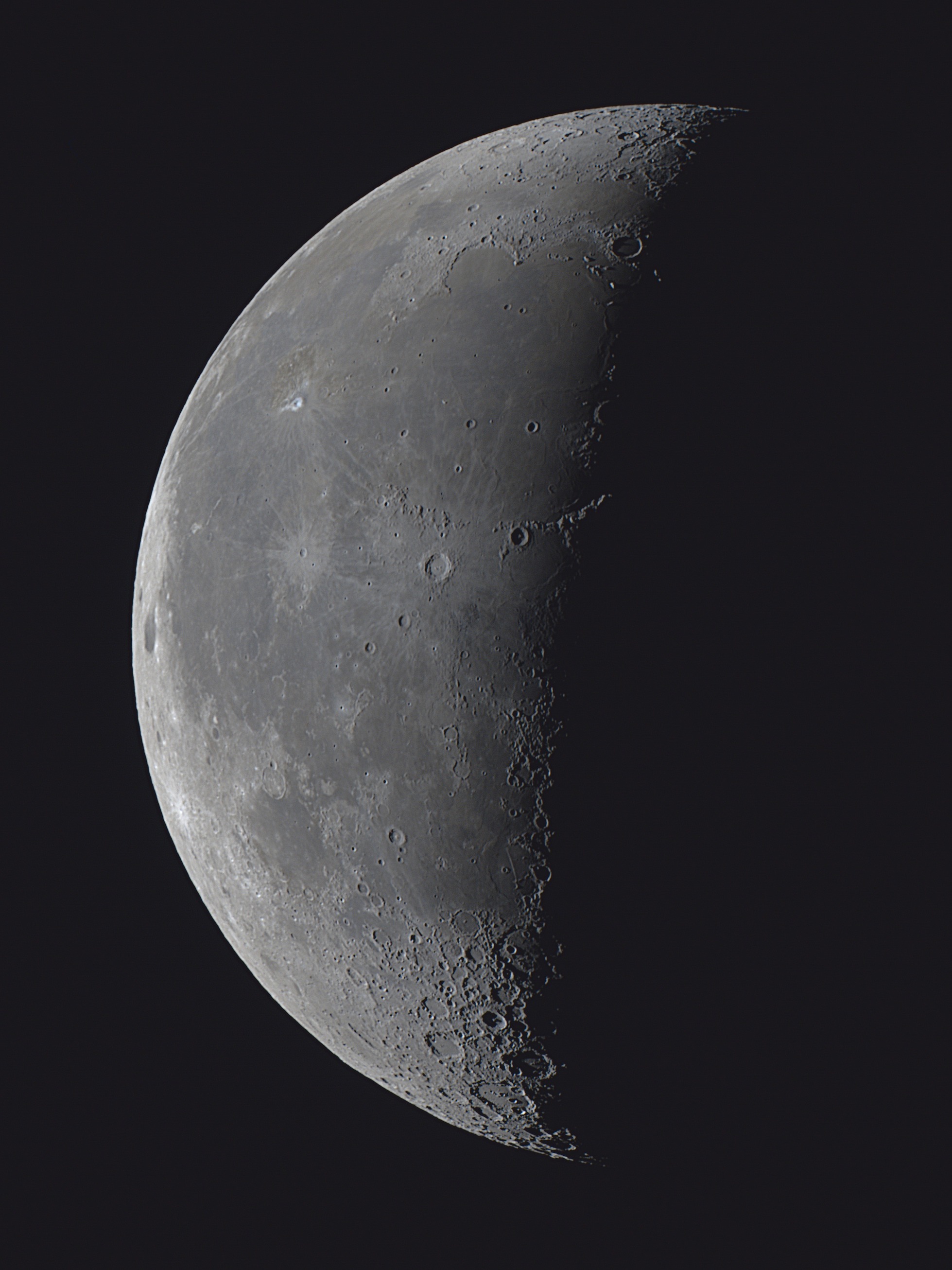 Около полуночи взошла Луна, и дождавшись когда она подымется на из-за деревьев (высота около 15 градусов) сделал серию RAW-кадров нашего спутника в прямом фокусе ДОБ12, т.е. в дипскайном режиме
