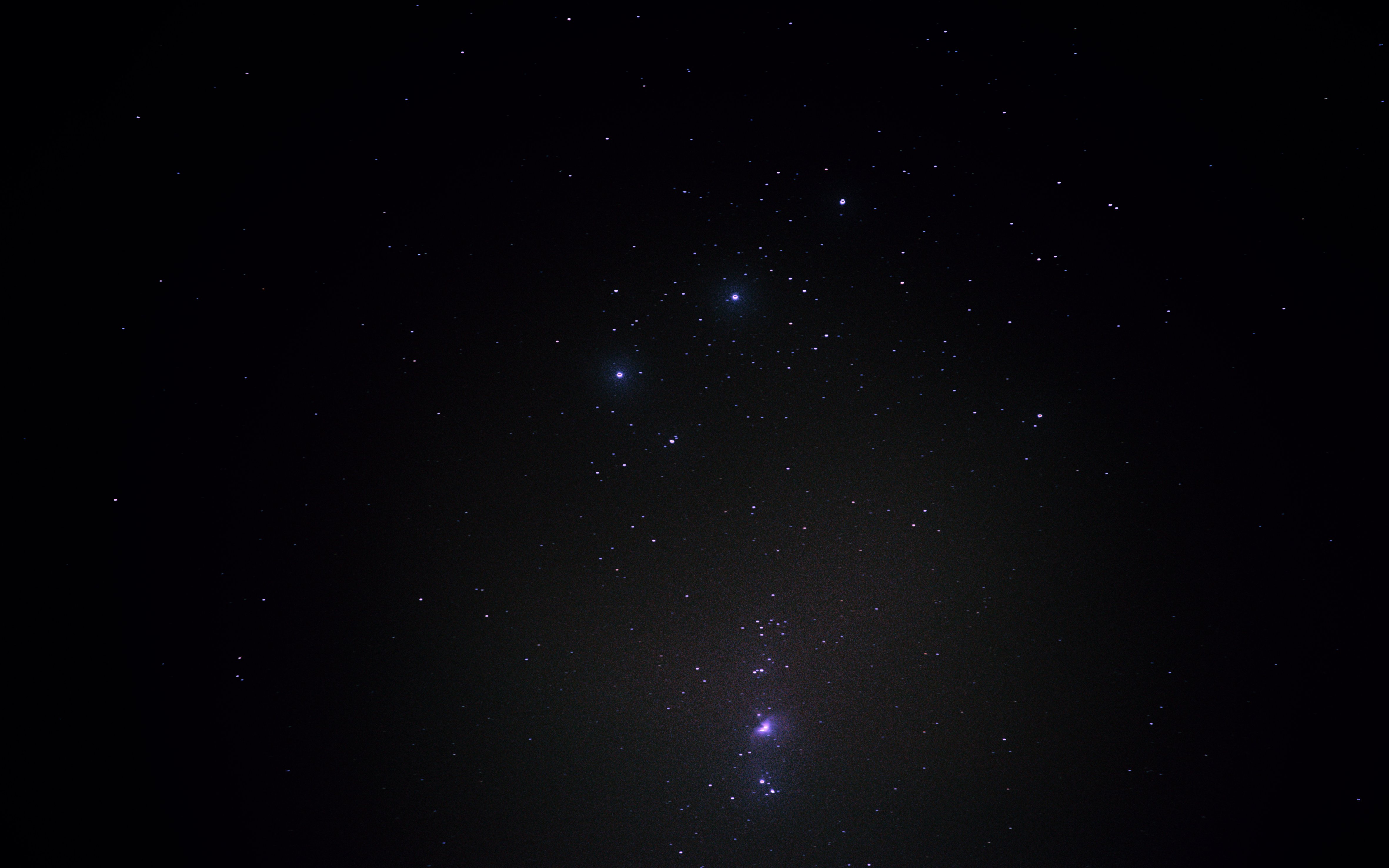Пояс Ориона и Туманность Ориона (М42) Первая моя туманность, которую хоть как то можно разглядеть )) 10.01.2014 г. Киев. Никон Д5100, обьектив 18-105, фокусное расстояние 105 мм, ИСО 800, общая экспозиция 3 мин. 20 сек. 40 из 50 кадров сложенных в Дип скай стакер + ФШ