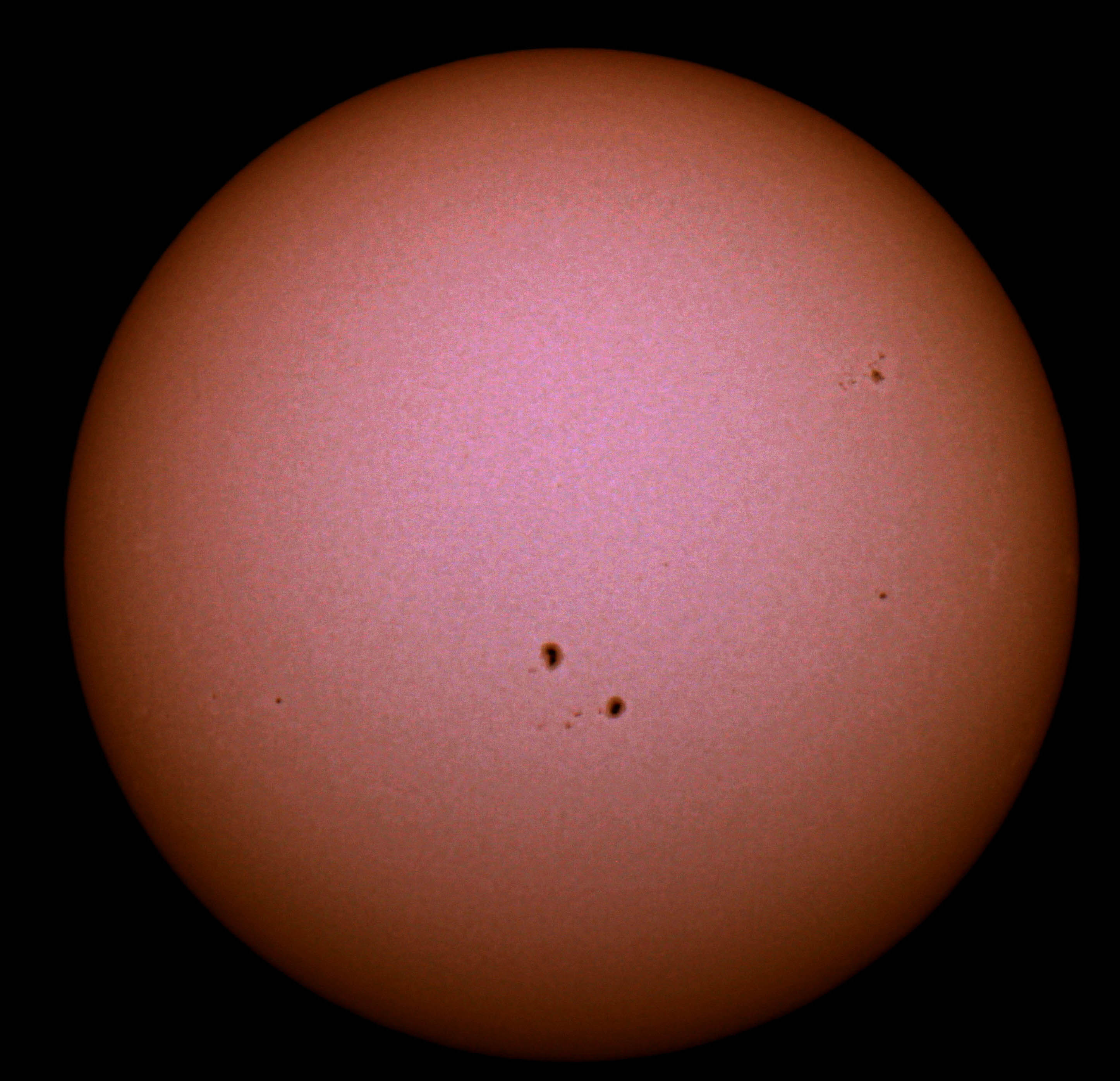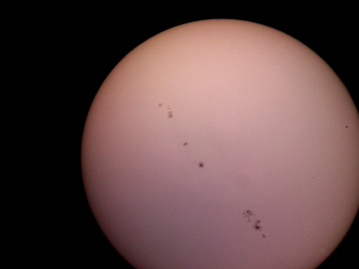 Совершенно верно, цикл солнечной активности близится к завершению и пятна появляются в основном вдоль экватора Солнца. И хотя сматрфоном трудно попасть в резкость, пятна прекрасно различимы и наглядно "опоясявают" наше светило. Спасибо за снимок.
