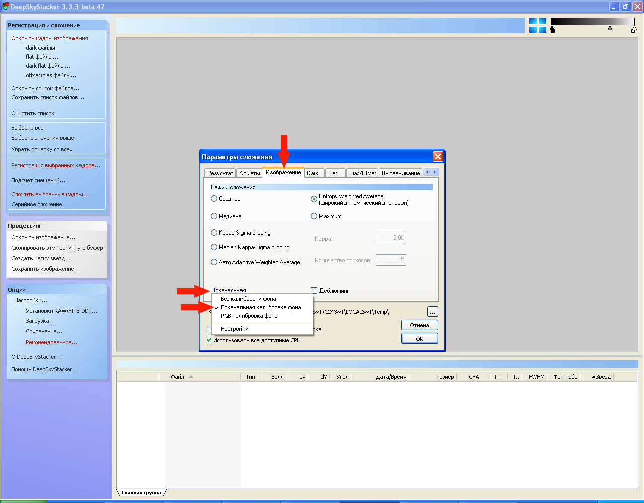 Опция Калибровка фона: - если Вы ипользуете обычную съемку на цветную матрицу, то установите Поканальную калибровку фона; - если Вы используете съемку с примененим фильтров или модифицированную цветную матрицу, то установите RGB калибровку фона. Просмотров: 9750