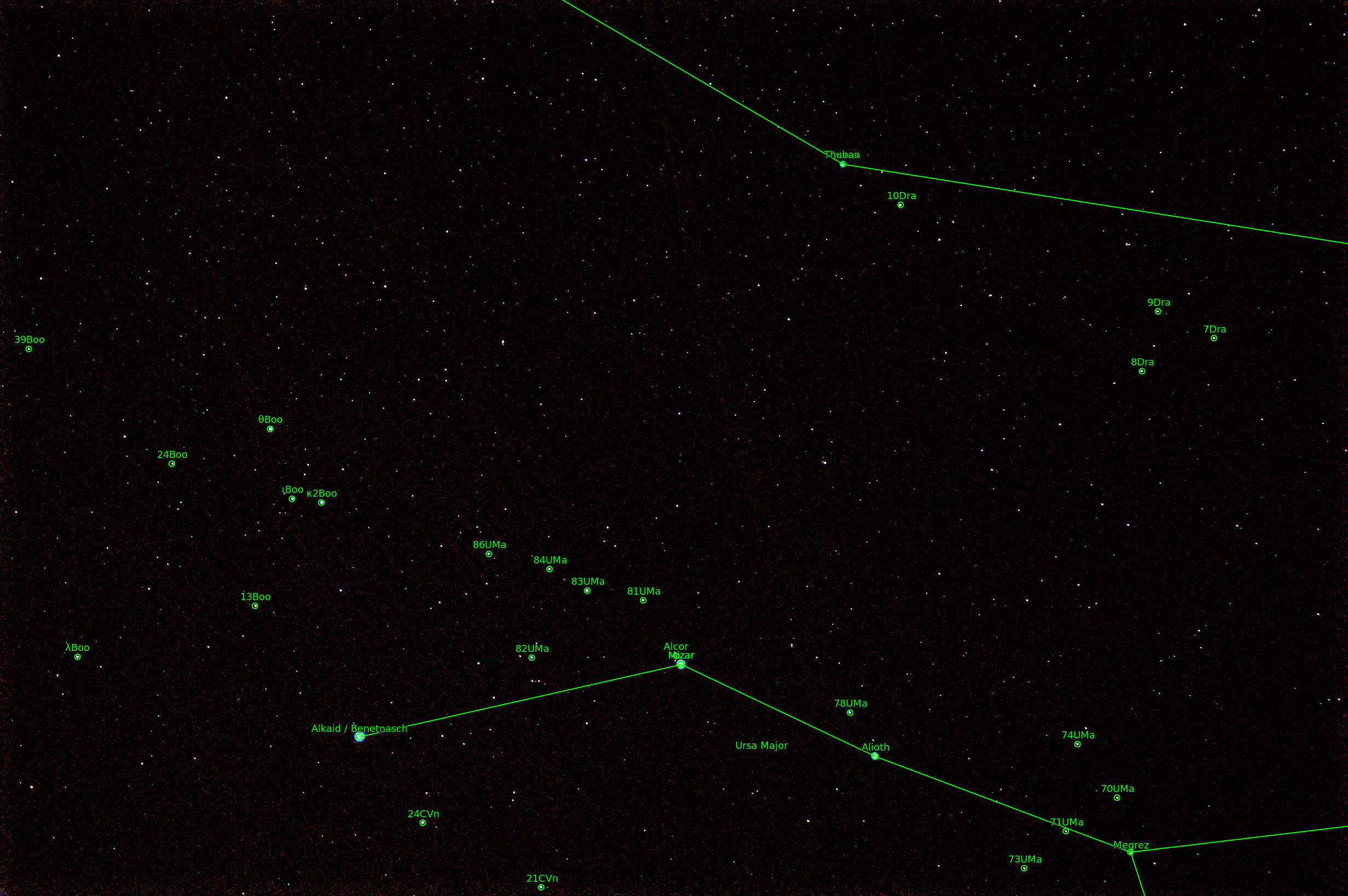 Я уже советовал - не стоит применять автонастройки Три ярких звезды внизу - это "ручка ковша" Большой Медведицы, вверху часть созвездия Дракон, слева часть созвездия Волопаса  Просмотров: 1568