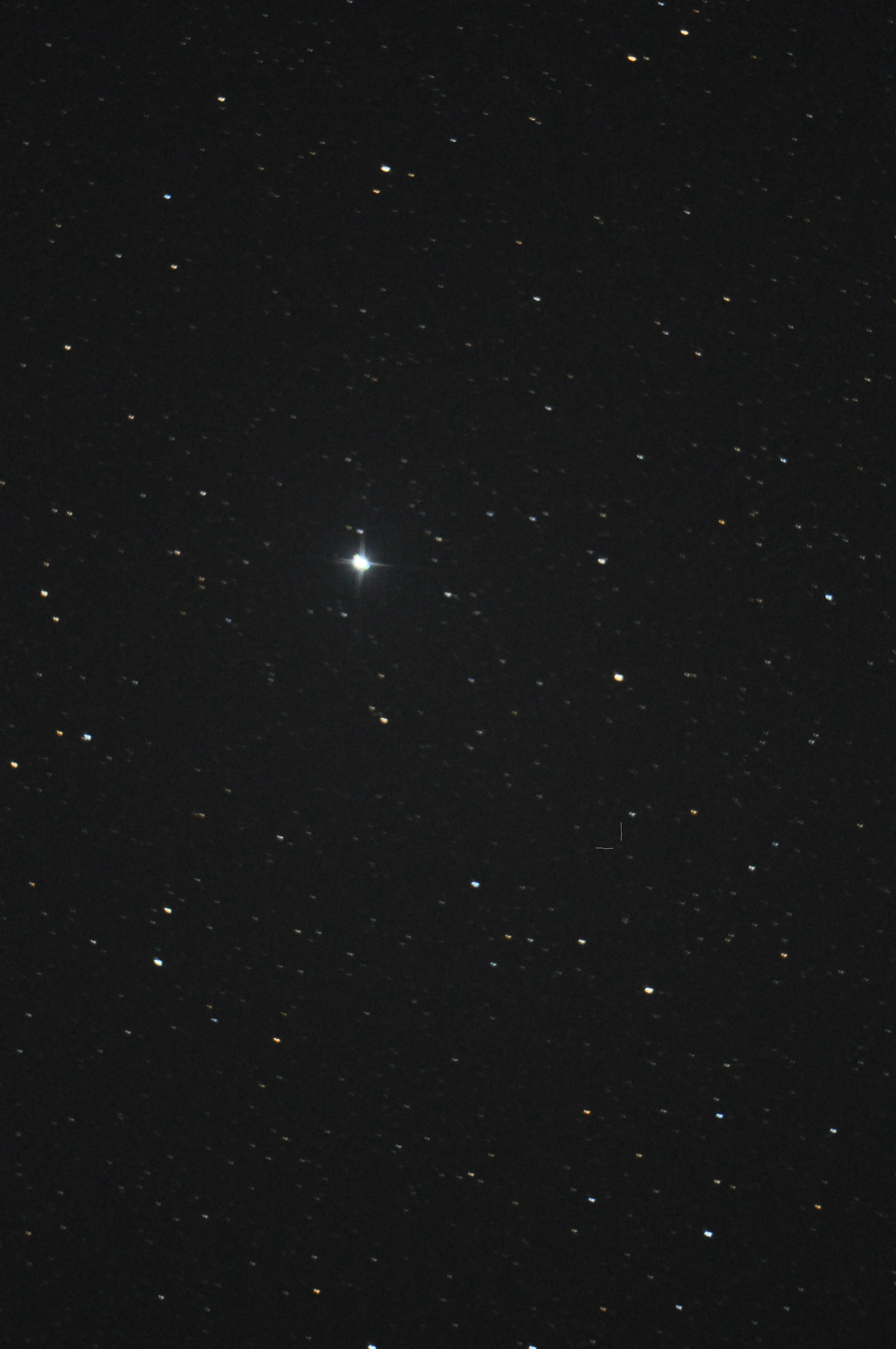 И вот, решил попробовать наблюдать теперь уже карликовую планету фотографическим путем. Телескоп пришлось тащить почти на огород, тянуть к нему питание. О точном выставлении полярной оси можно было только мечтать. Во время экспозиции произошел какой то сбой (изображение двоится). Может фотик принял чего горячительного!?