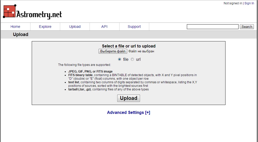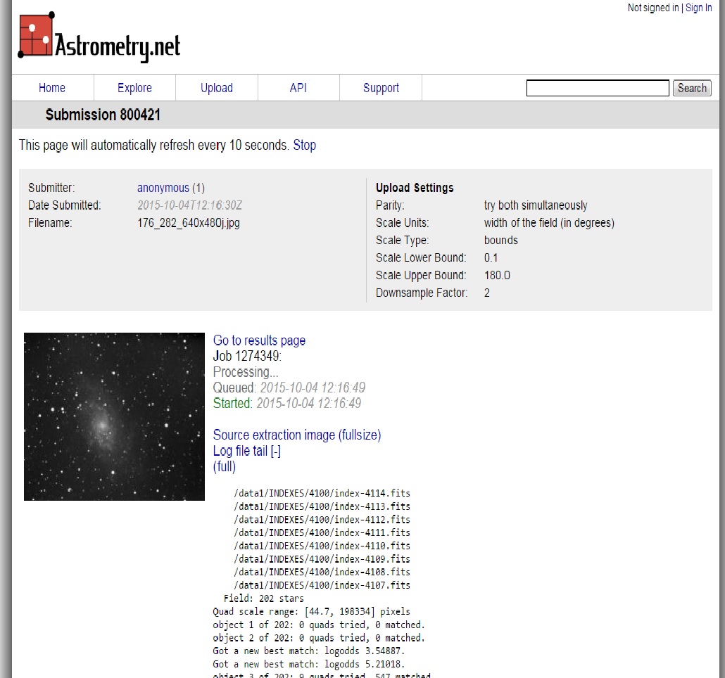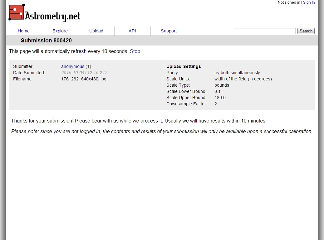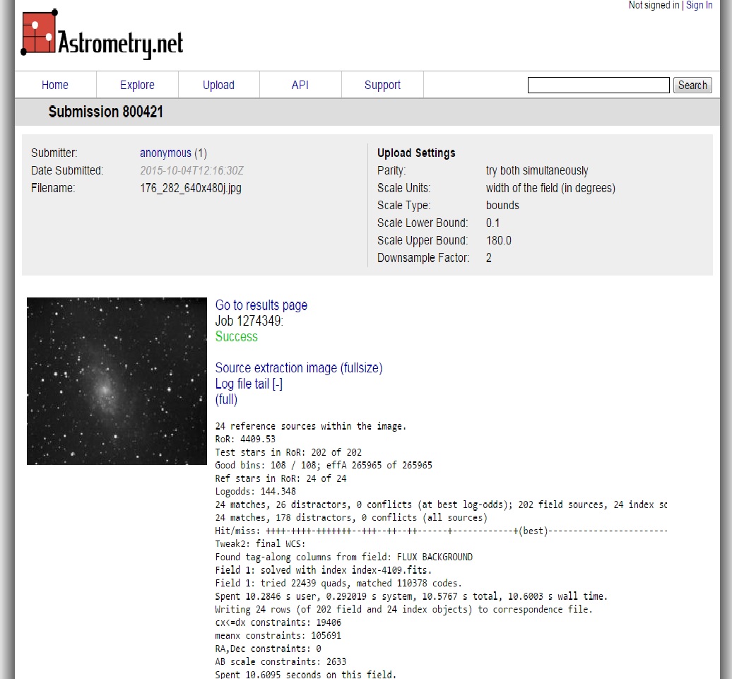http://nova.astrometry.net/upload. На этом ресурсе можно загрузить свою фотографию звездного неба, и через некоторое время будет проведено отождествление Вашего снимка с участком звездного неба.