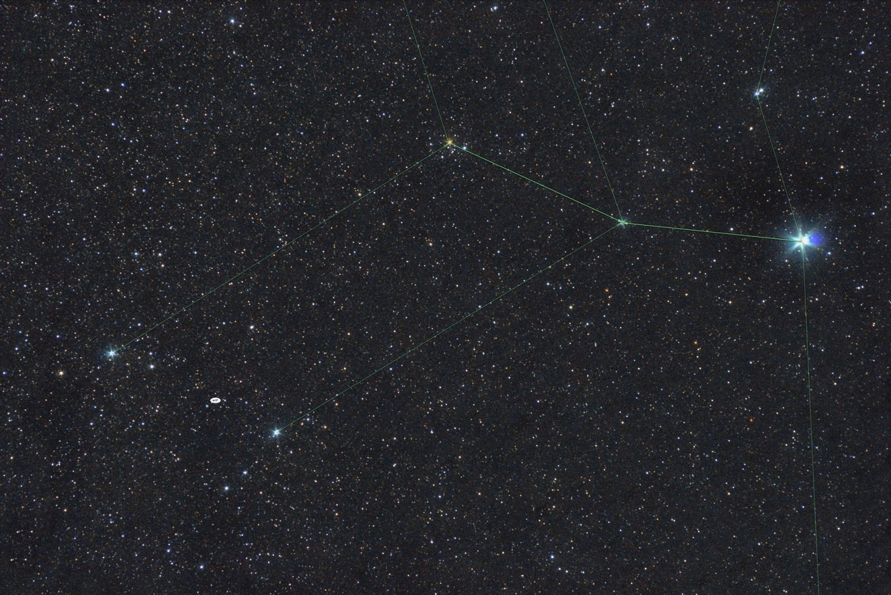 К сожалению, собственной фотографии астеризма у меня нет. Я его наблюдал в бинокль БПЦ 20х60. Выглядел он очень красиво, полностью располагаясь в поле зрения. Потому приведу фото дня за 28.01.2010 от Астронет.ру. Фото получено Грегом Паркером и Ноэлем Карбони в обсерватории Нью-Форест.