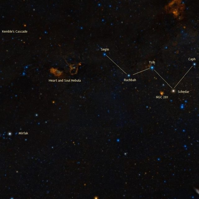 Самая яркая звезда в каскаде HD 24479, также известная как HR 1204 или H Cam с блеском 4,95m, видна невооруженным глазом.