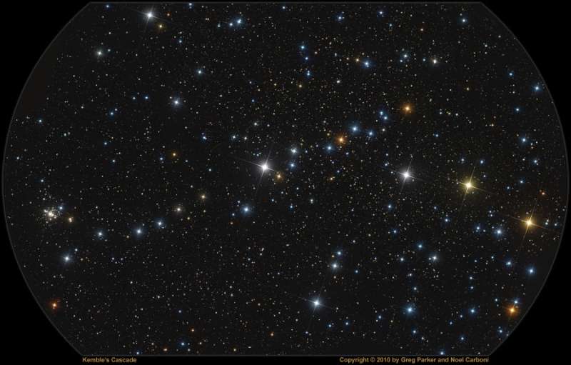 В созвездии Жирафа есть очень красивый астеризм - Каскад Кембла (Kemble’s Cascade), названный в честь канадского любителя астрономии Люциана Кембла, наблюдавшего его в бинокль 7х35 еще в конце 70-х годов прошлого века. Кембл написал об открытии обозревателю журнала "Sky и Telescope" Уолтеру Скотту Хьюстону, который в номере за декабрь 1980 года поместил публикацию об этой великолепной цепочке звезд.