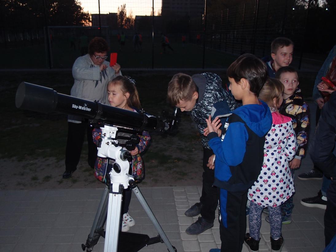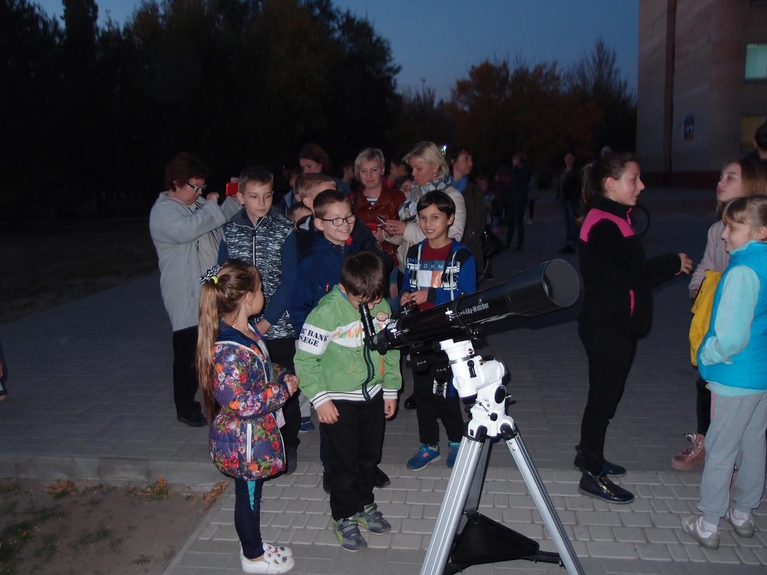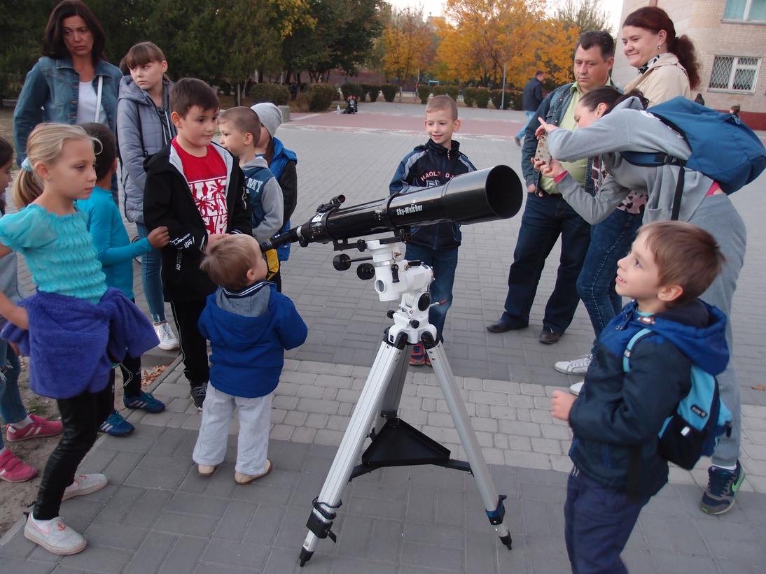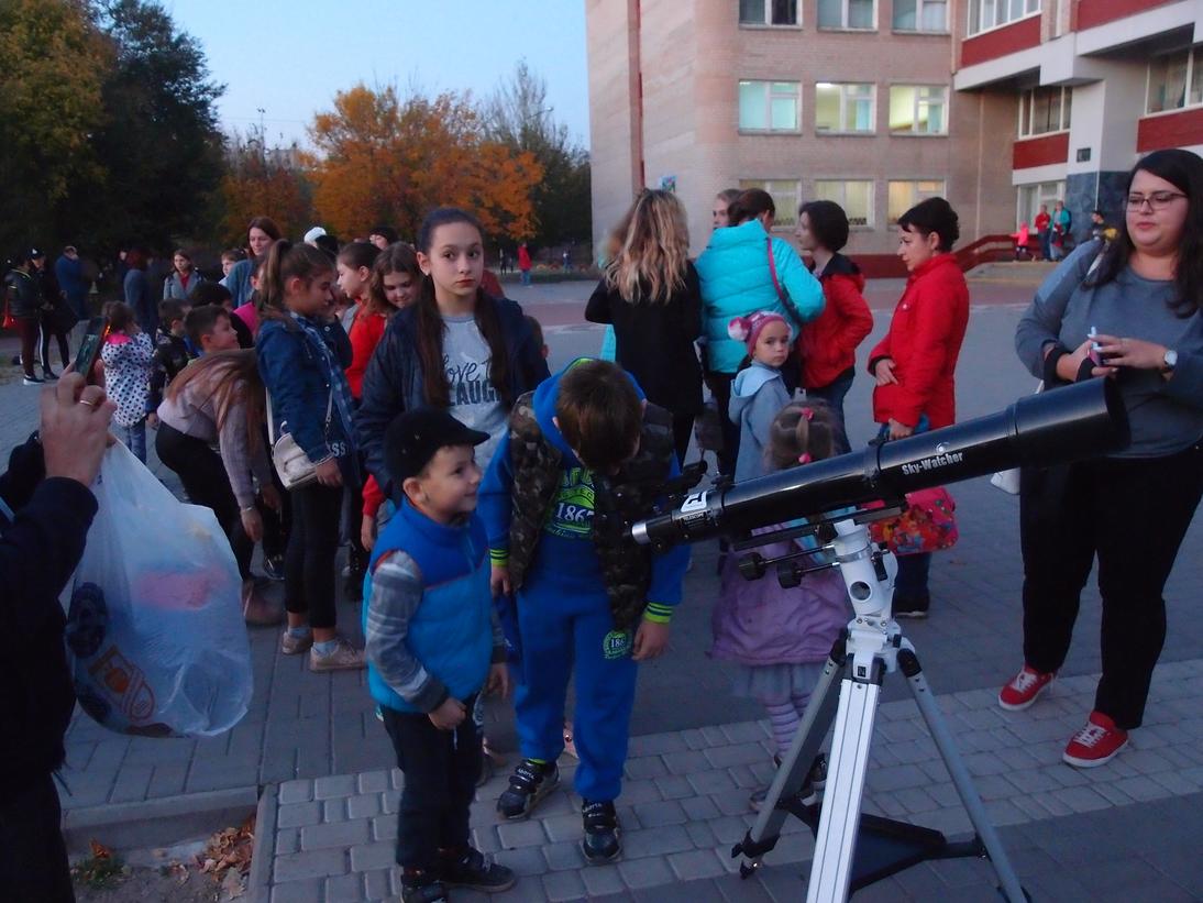 18 октября 2018 г. вечером во дворе Мелитопольской общеобразовательной школы №4 было многолюдно, шумно, весело! Вечер Тротуарной астрономии собрал желающих увидеть космические объекты намного раньше запланированного времени, поэтому наблюдения начались с первыми посетителями. Детвора и взрослые активно интересовались возможностями телескопа, информацией о видимых объектах.