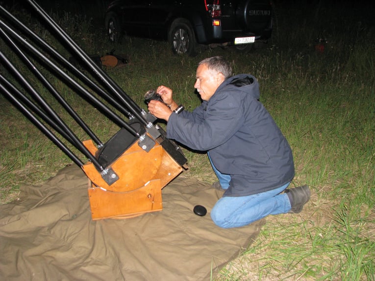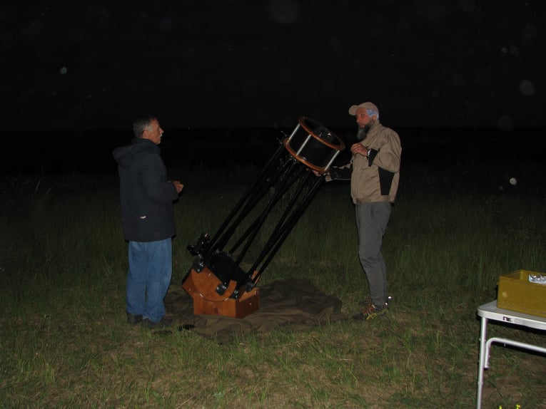 В разрывах облачности появились первые звезды. Это, как обычно в это время, были Арктур и Вега. Проверили юстировку телескопа и настроили искатели.