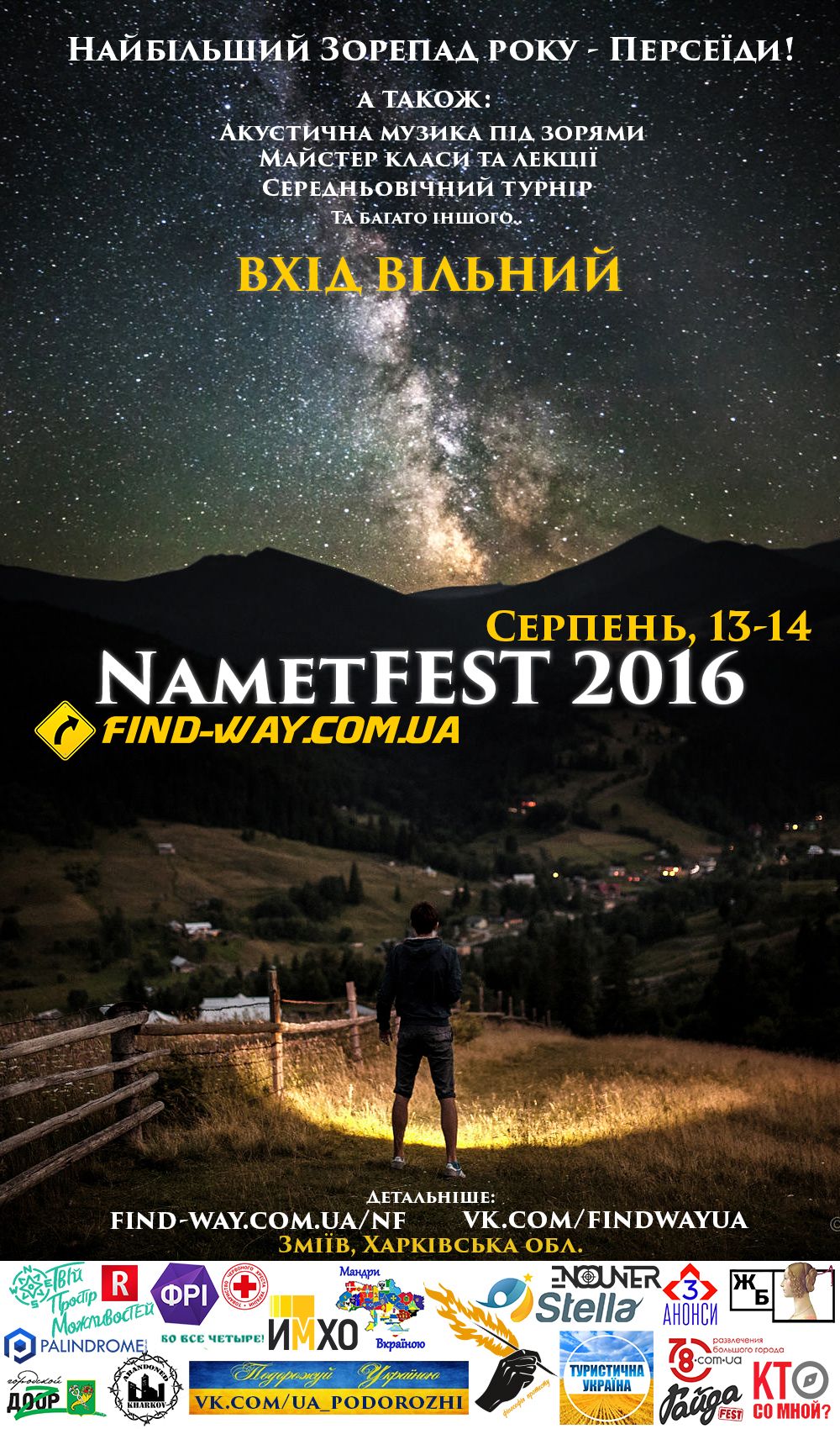 Саме в дні її найбільшої інтенсивності #FINDWAY започаткував наметовий фестиваль NametFEST з майстер класами та розвагами вдень, та музикою й неосяжним космосом вночі.
