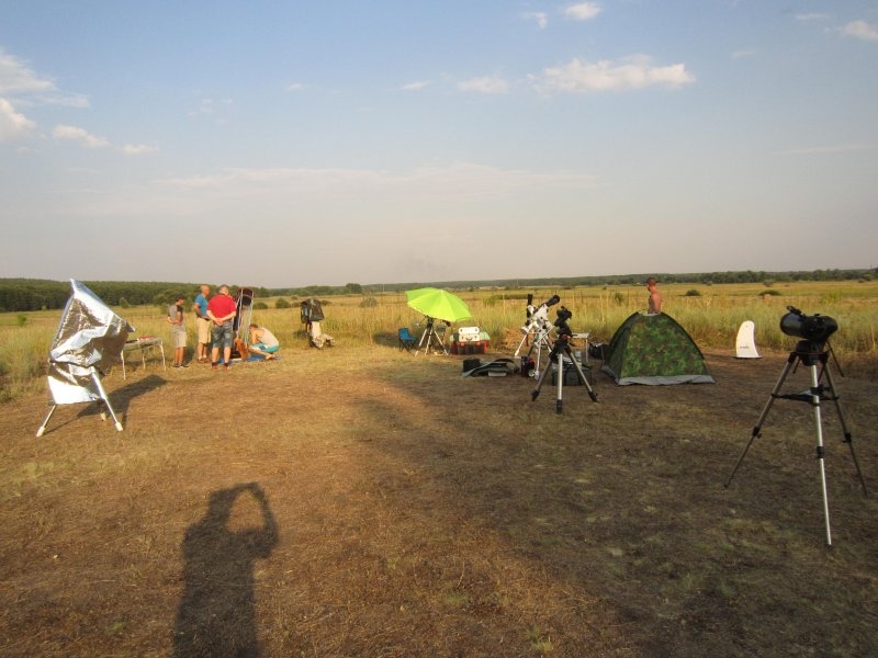 Днем заметный интерес вызвали наблюдения в 110-мм рефрактор с приставкой "Коронадо", в который просто замечательно были видны солнечные протуберанцы и грануляция. Дневную жару желающие сбивали купанием в речке, уровень воды в которой по сравнению с прошлыми годами был заметно ниже. Засуха...